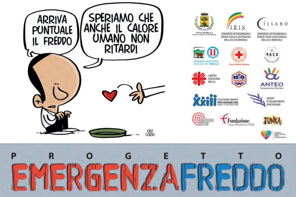 Il 18 novembre è partita la decima edizione dell’ “Emergenza Freddo”, progetto nato nel 2012 come uno degli esiti dei lavori del Piano di Zona 2009-2011. La prima edizione vedeva coinvolti dieci partners (IRIS, CISSABO, Città di Biella, Caritas, CRI Biella, ASL Bi, Istituto Belletti Bona, Gruppi di Volontariato Vincenziano, Associazione Papa Giovanni XXIII, Centro Territoriale per il Volontariato) e prevedeva una risposta emergenziale con l’attivazione di venti posti al Belletti Bona accanto ai venti del dormitorio.