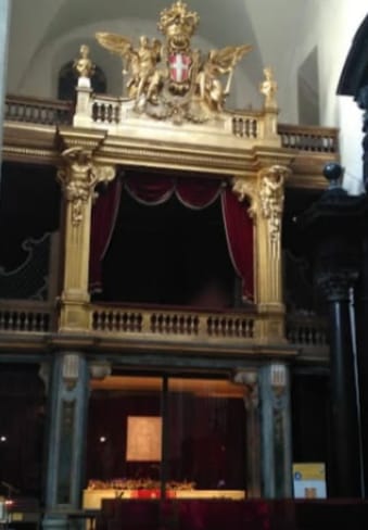 Si può ammirare il panno di lino su cui si vede l’impronta del viso di Gesù, ad opera di una pia donna chiamata la Veronica. ( Esistono in molte chiese in tutto il mondo altri immagini simili per cui non si può sapere quale sia l’originale.)
