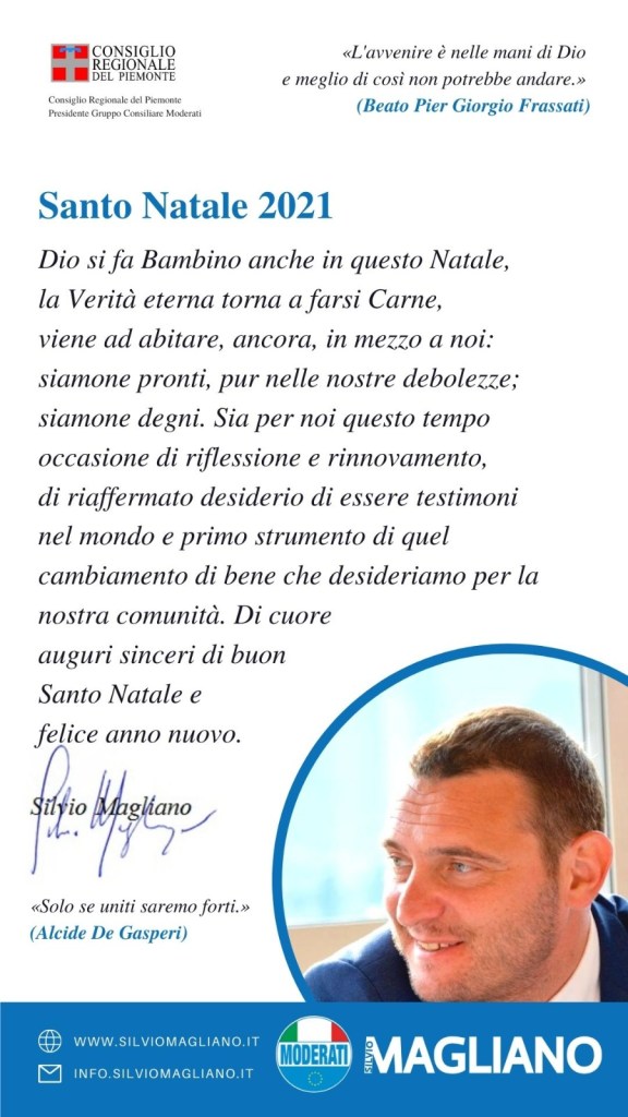 La Redazione di contg.news è onorata oggi di ospitare la lettera augurale per un buon Santo Natale e Felice Anno Nuovo del consigliere regionale Silvio Magliano. A lui a sua volta vadano i nostri più profondi ringraziamenti per la collaborazione instauratasi mesi fa.