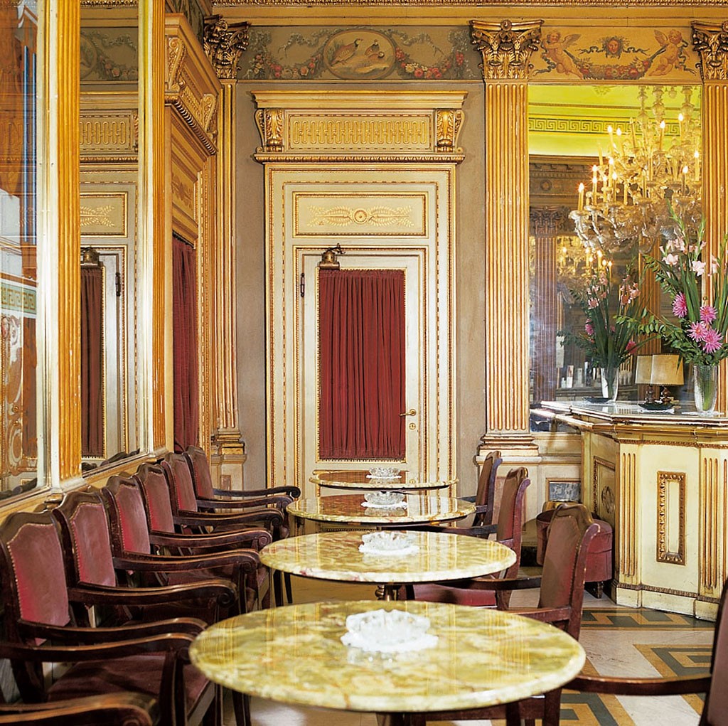 Subì gravi danni durante la seconda Guerra Mondiale rimanendo chiuso per dieci anni per restauro restituendo così affreschi al soffitto, stucchi dorati originali di capitelli, grandi lampadari di cristallo. E’ inserito nella lista dei Locali Storici d’Italia ed offre una vasta scelta di ottima pasticceria fresca.