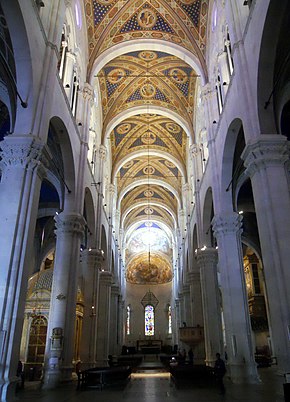 L’interno del duomo di Lucca è suddiviso in tre navate e presenta una pianta a croce latina; in generale l’aspetto dell’interno è caratterizzato da un marcato verticalismo, anche a causa della notevole differenza di altezza fra la navata centrale e quelle laterali. Fra le opere presenti all’interno di questa cattedrale ne segnaliamo due: la prima è la Madonna in trono col Bambino e Santi, dipinto di Domenico Ghirlandaio eseguito intorno al 1479; la seconda è il Monumento funebre a Ilaria del Carretto, opera scultorea di Jacopo della Quercia databile fra il 1406 e il 1408.