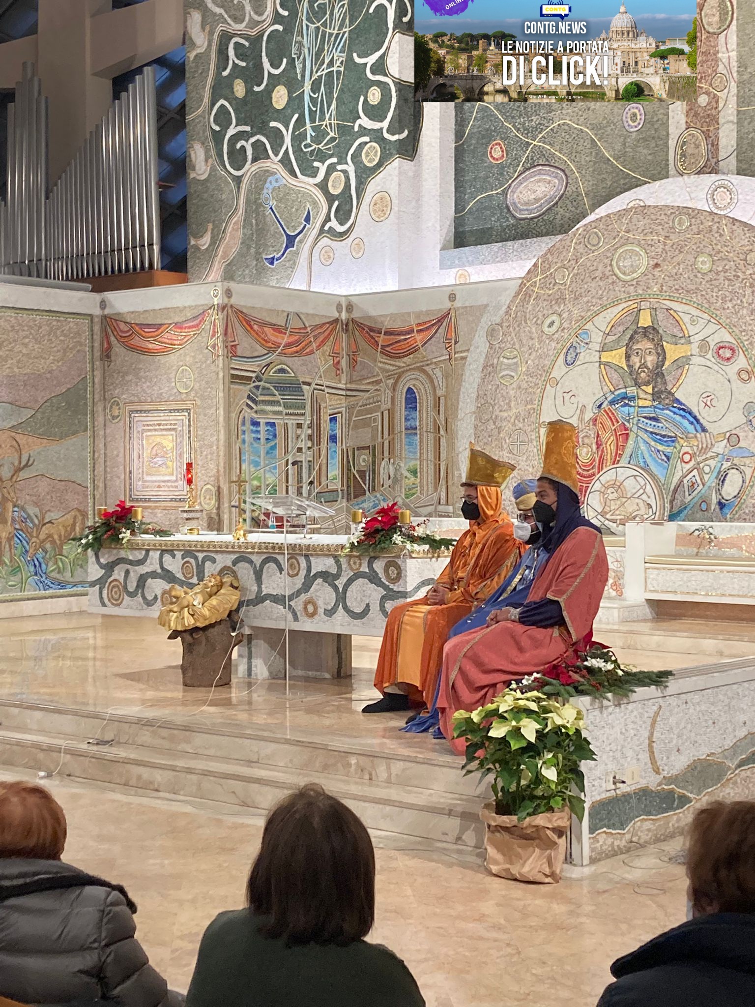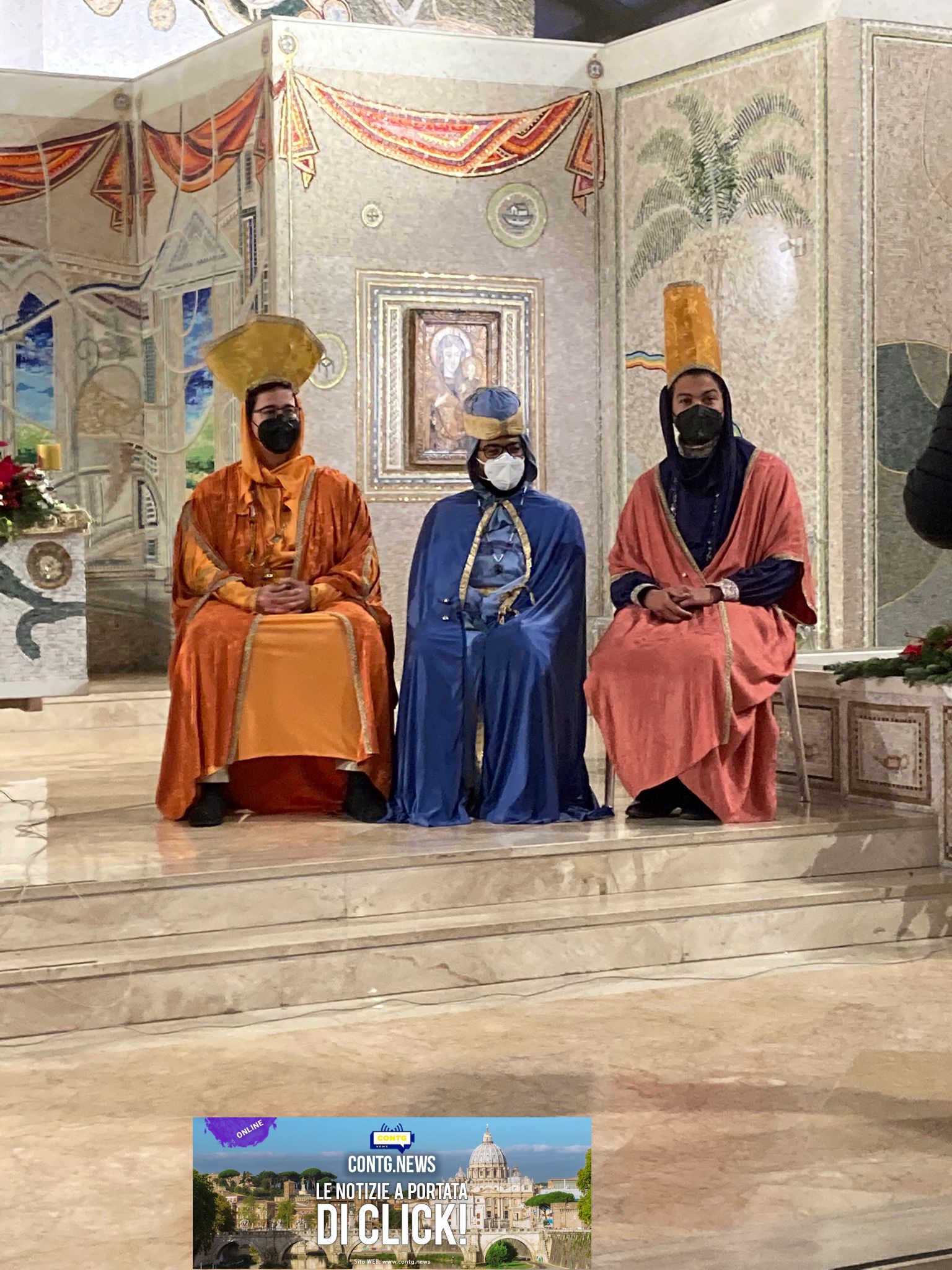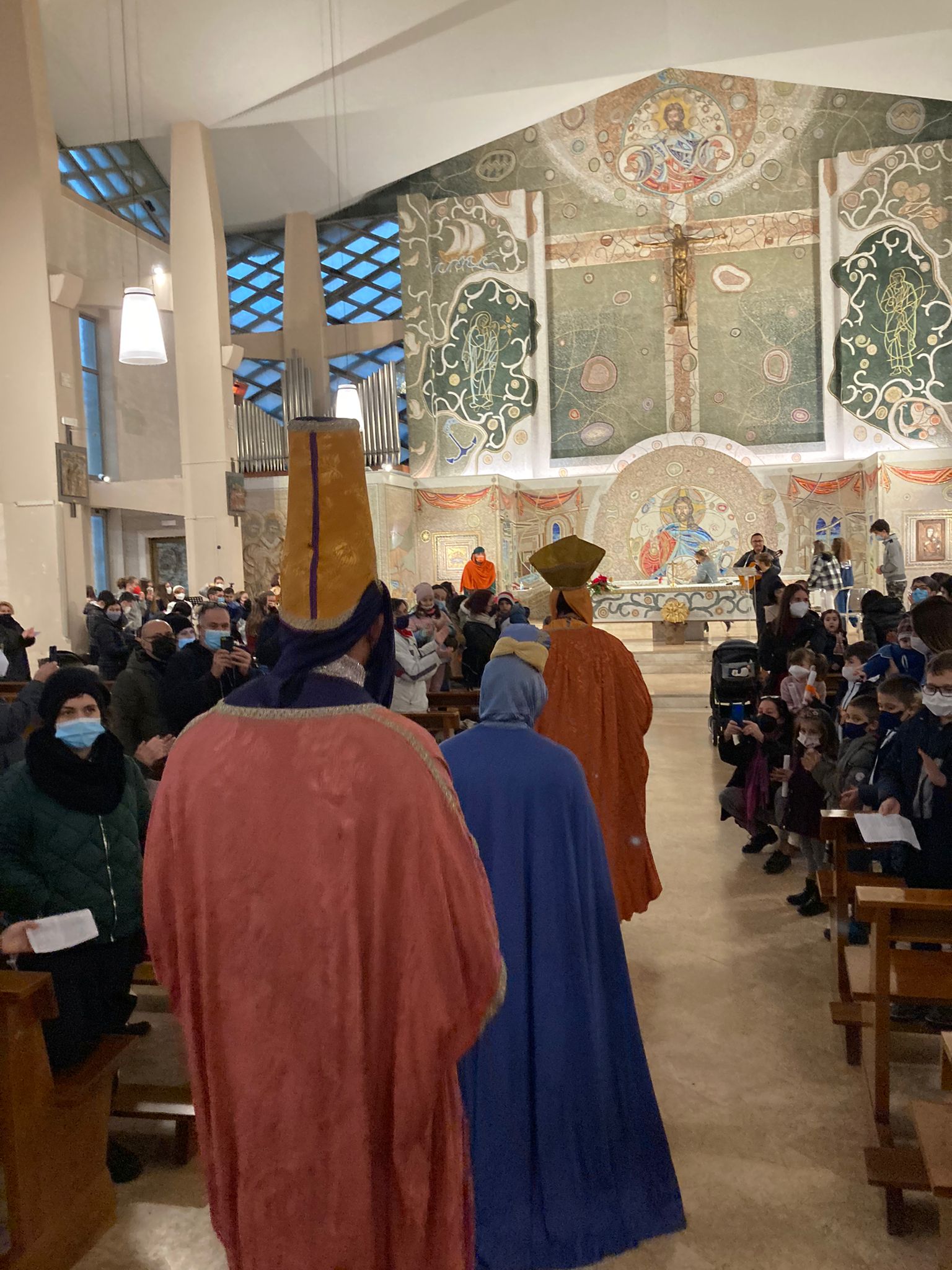 Il centro è stato l’arrivo dei Magi in grande solennità, con i costumi tipici e i doni: oro, incenso e mirra. Proclamato il brano del Vangelo dell’Epifania, i Magi hanno pregato davanti a Gesù Bambino e deposto i doni.