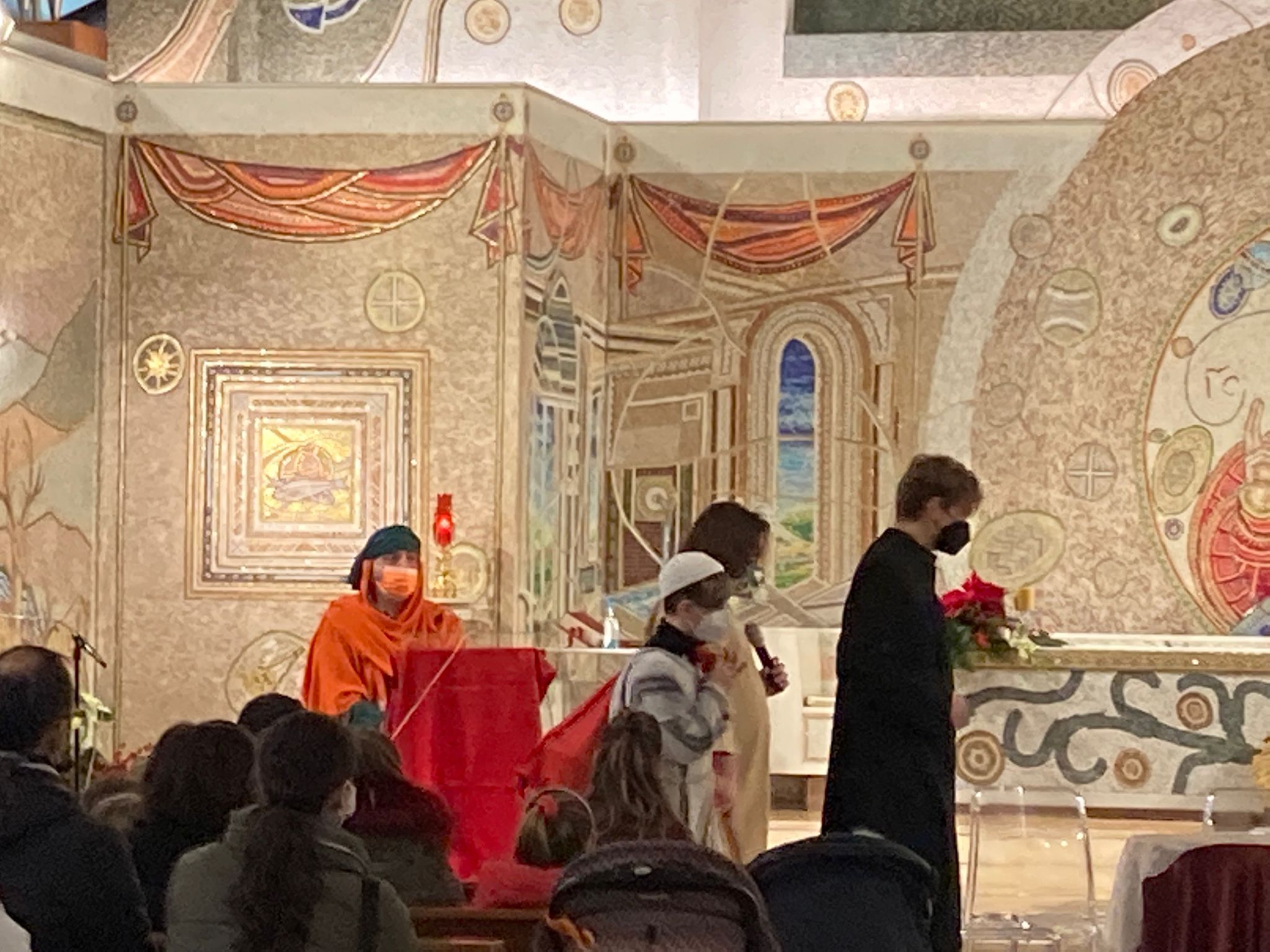 Lunedì il gruppo giovani insieme a don Thierry hanno fatto una rappresentazione del “presepe vivente” e l’arrivo dei Magi. Perché proprio oggi e non il 6? Per quanto ci riguarda l’iniziativa nasce da una tradizione del Cammino neocatecumenale che fa di questa festività una opportunità di catechesi e di festa per i bambini e le famiglie.