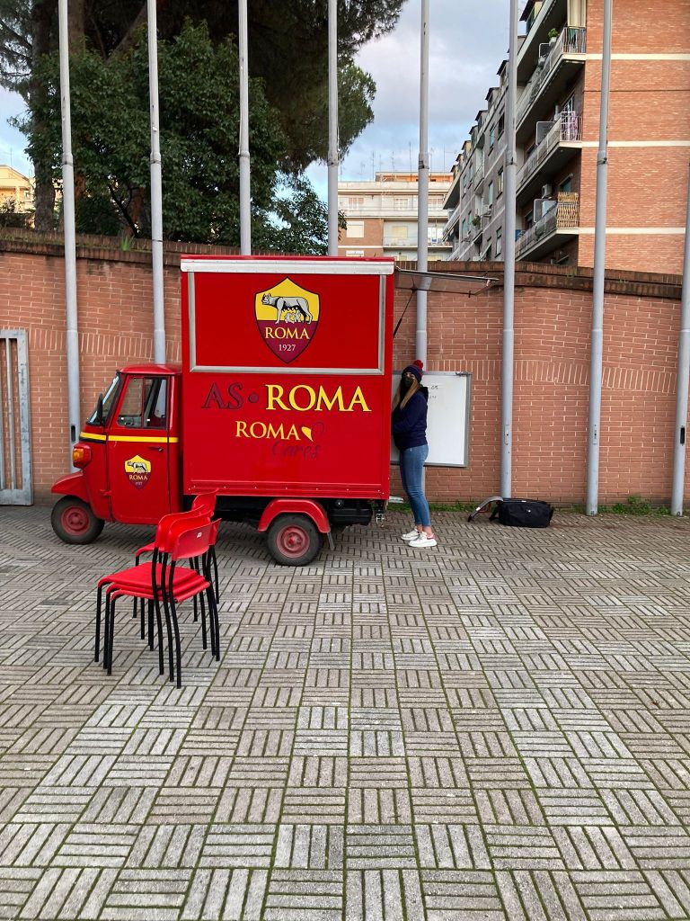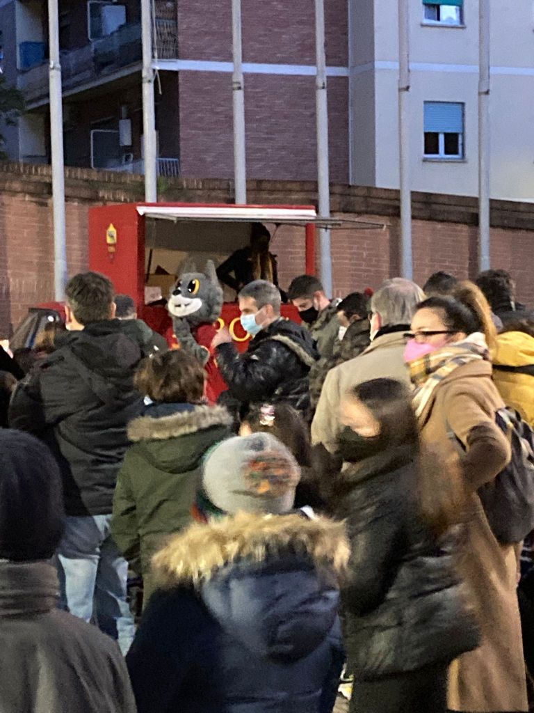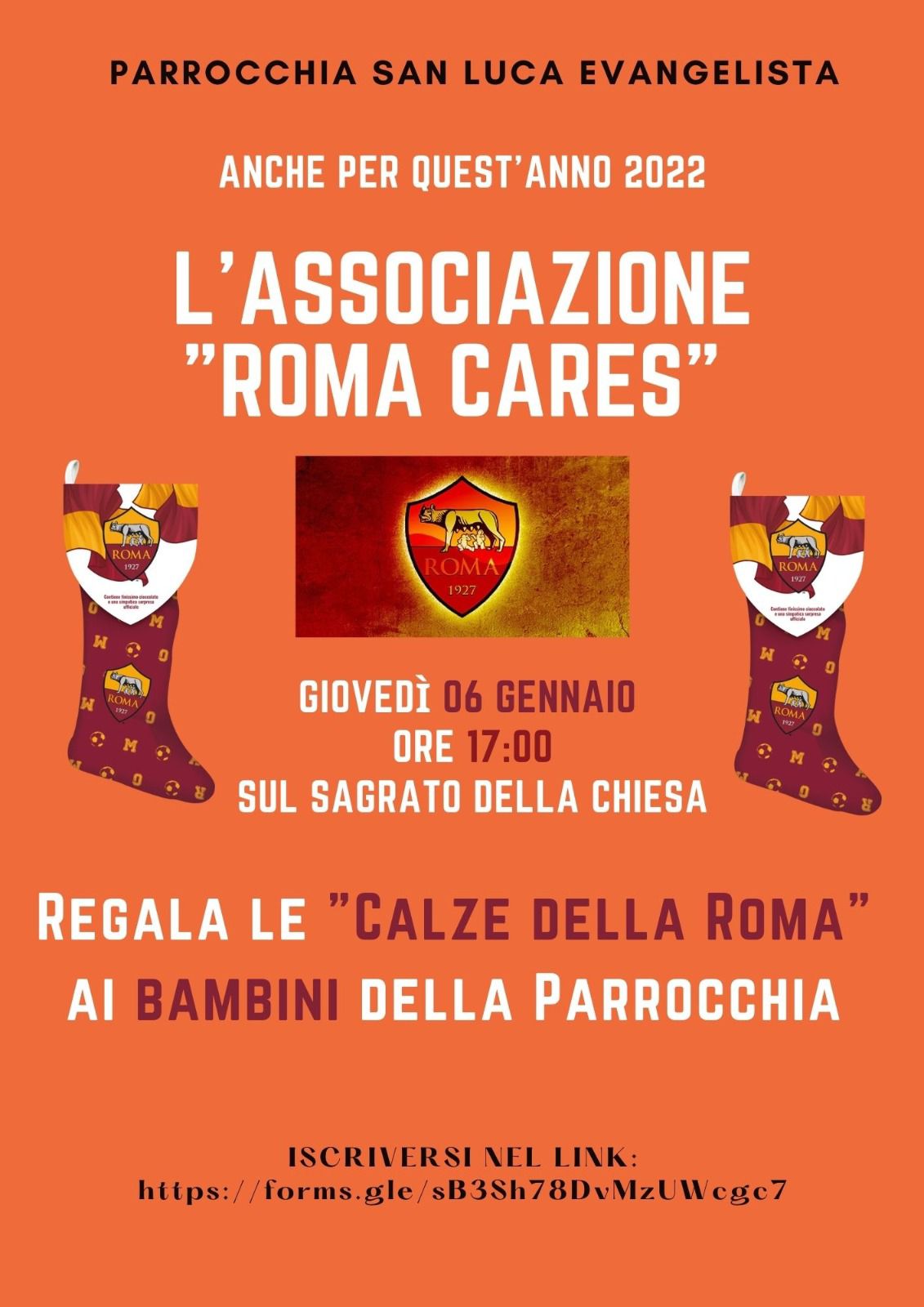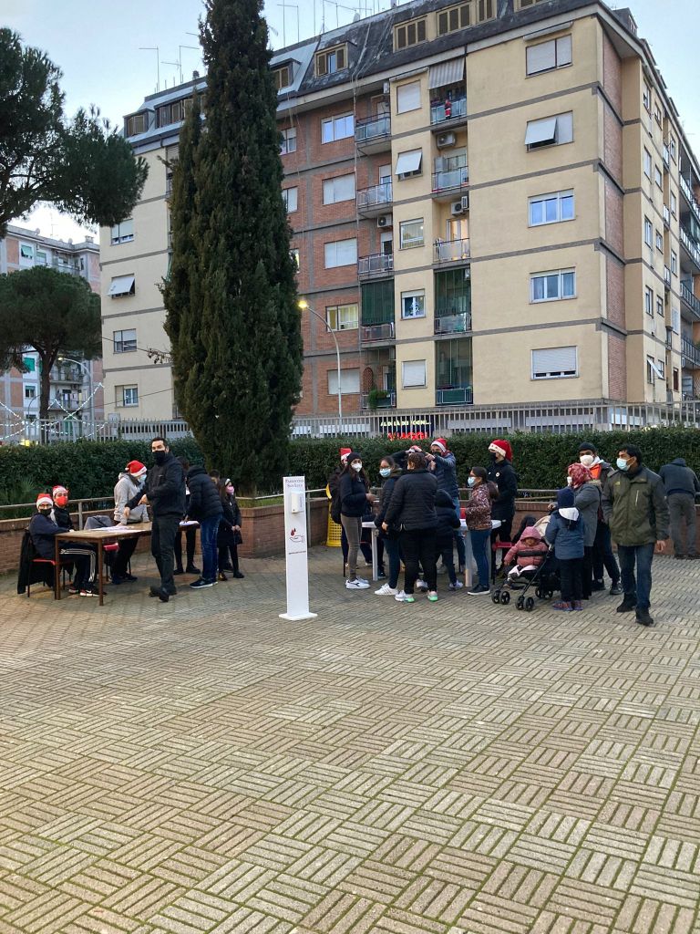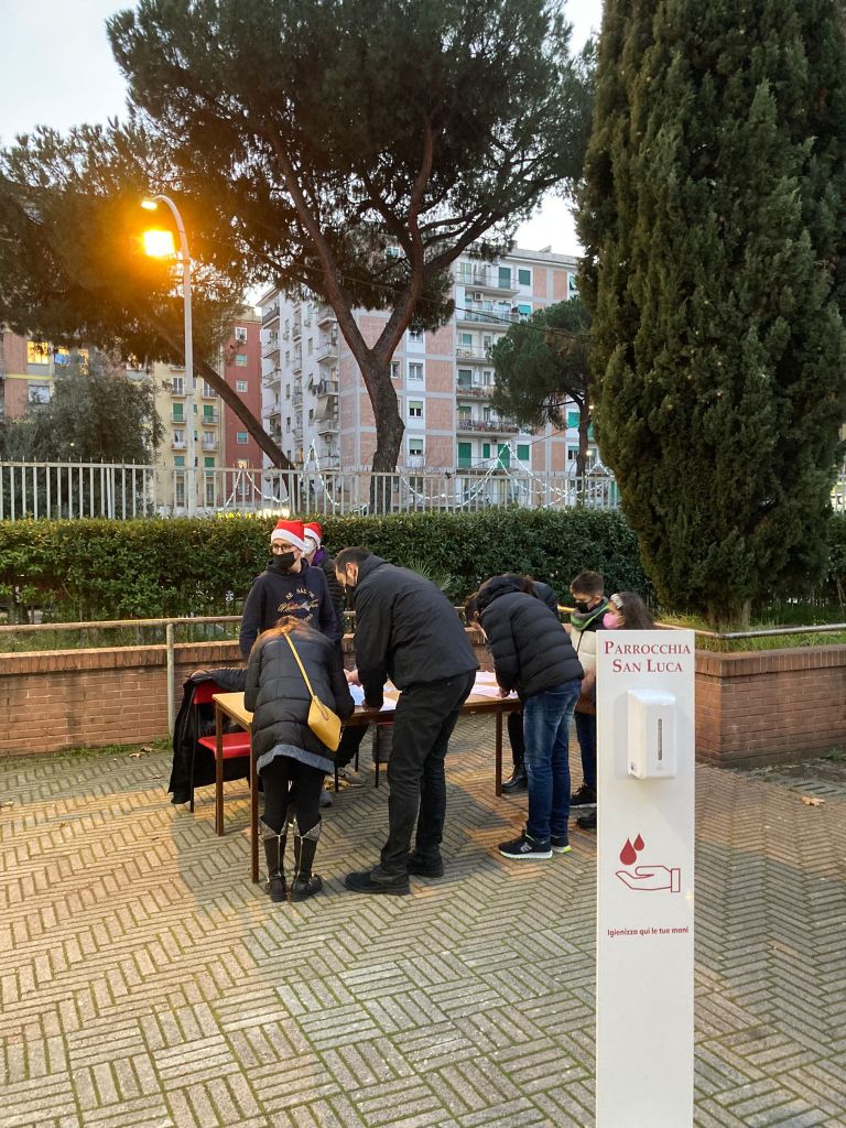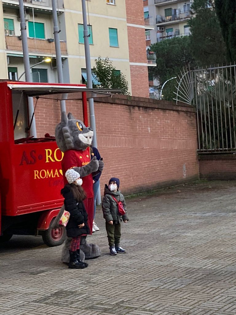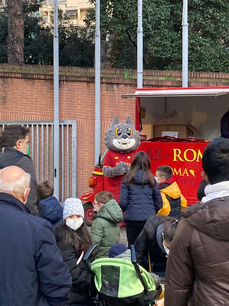 Con la preziosa e generosa collaborazione dei ragazzi del gruppo giovani e degli animatori dell’OR.ES. guidati da don Thierry, è stato allestito quanto necessario per l’accoglienza e la gestione degli adempimenti sia relativi alle norme contenimento Covid 19, sia alla modulistica per le liberatorie per foto e riprese, abbiamo accolto i membri della A. S. Roma Care e la mascotte Romoletto che ha distribuito le calze a tutti i bambini presenti e fatta con ciascuno la foto ricordo.