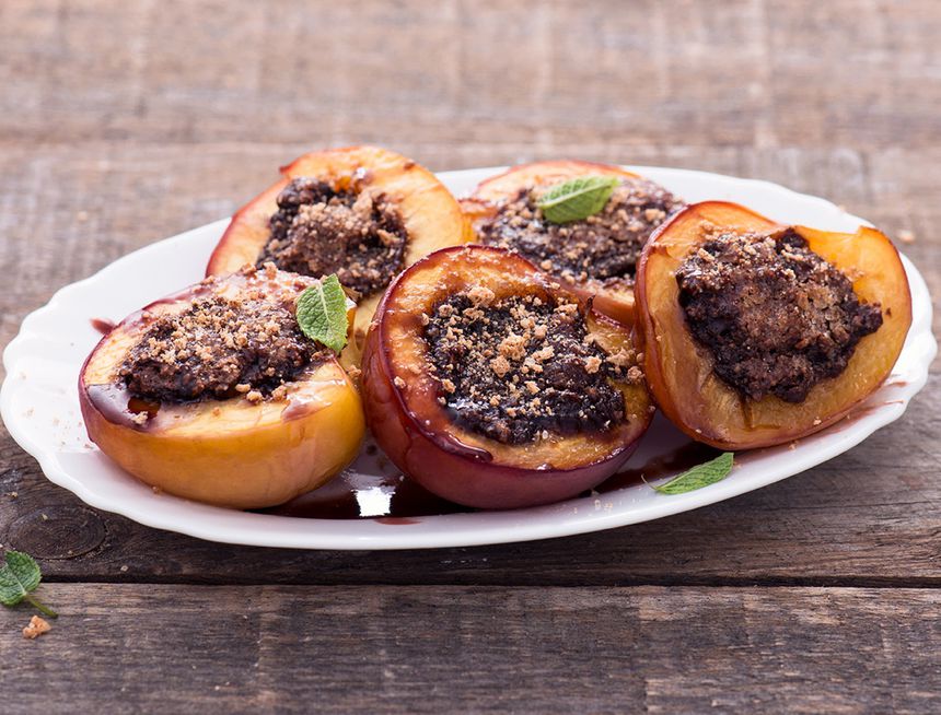 Le pesche ripiene erano cucinate dalla borghesia di fine Ottocento e sono un piatto tipico estivo scegliendo infatti le pesche giallo – rosse di grandi dimensioni. Si aprono a metà e tolto il nocciolo e parte della polpa, vengono messe sopra ad una teglia imburrate e cucinate in forno con la loro buccia. Si riempiono con la polpa fatta a pezzi, uova,zucchero, burro, amaretti secchi, schiacciati e pasta frolla sbriciolata. È facoltativo aggiungere vino o liquore. In Piemonte quando sono cotte si cospargono di cacao, in Liguria invece si aggiungono i canditi.