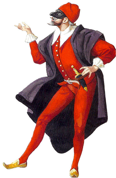 Anche questa maschera è tra le più antiche; nata a Venezia raffigura un ricco mercante serio e avaro, non più giovane, ama la compagnia femminile, sia cortigiane sia servette. Si presenta ricco di fascino riscuotendo sempre un gran successo. Il suo vestito è rosso con un mantello nero e porta sempre con sé la sua borsa carica di monete.