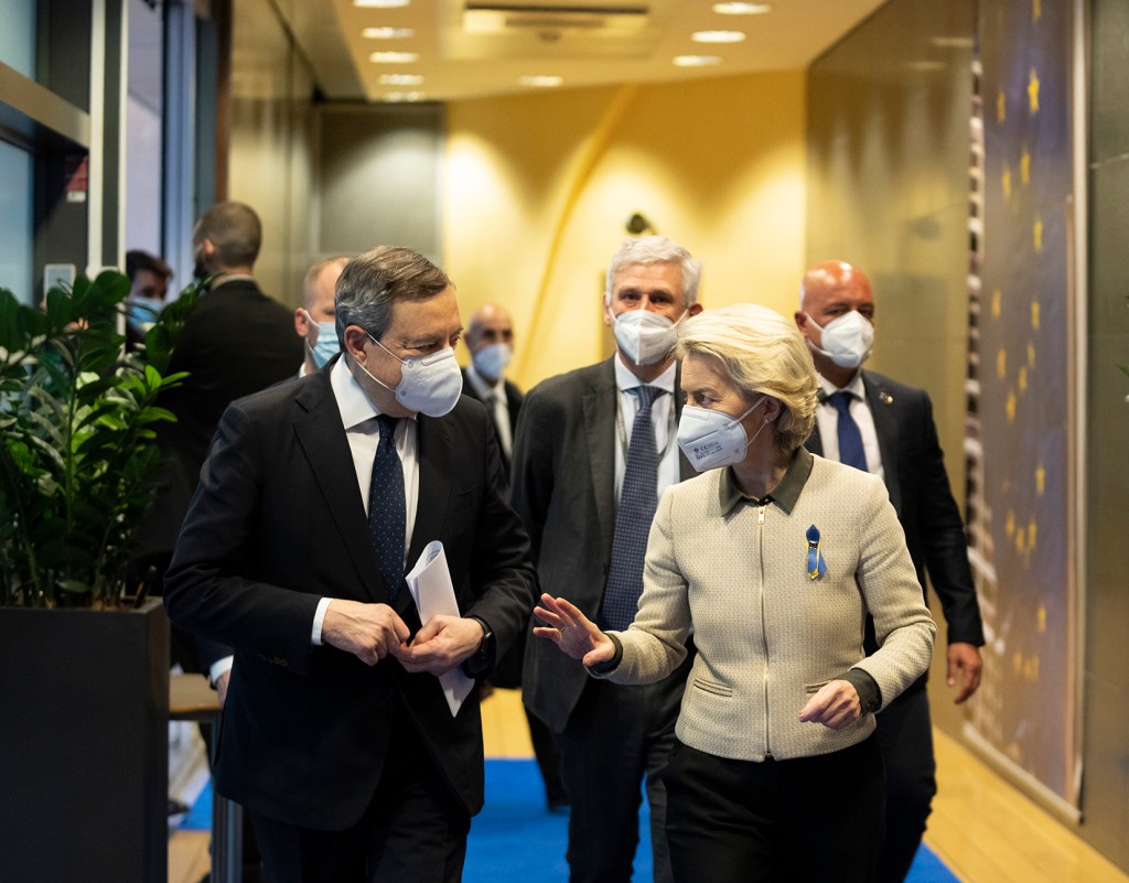 Si è tenuto ieri il significativo incontro del Presidente Draghi a Bruxelles con la Commissaria Von Der Layen . Si è discusso dell’attuale conflitto ucraino russo e su un maggiore rafforzamento delle sanzioni. Ecco il Testo Integrale pronunciato da Draghi.