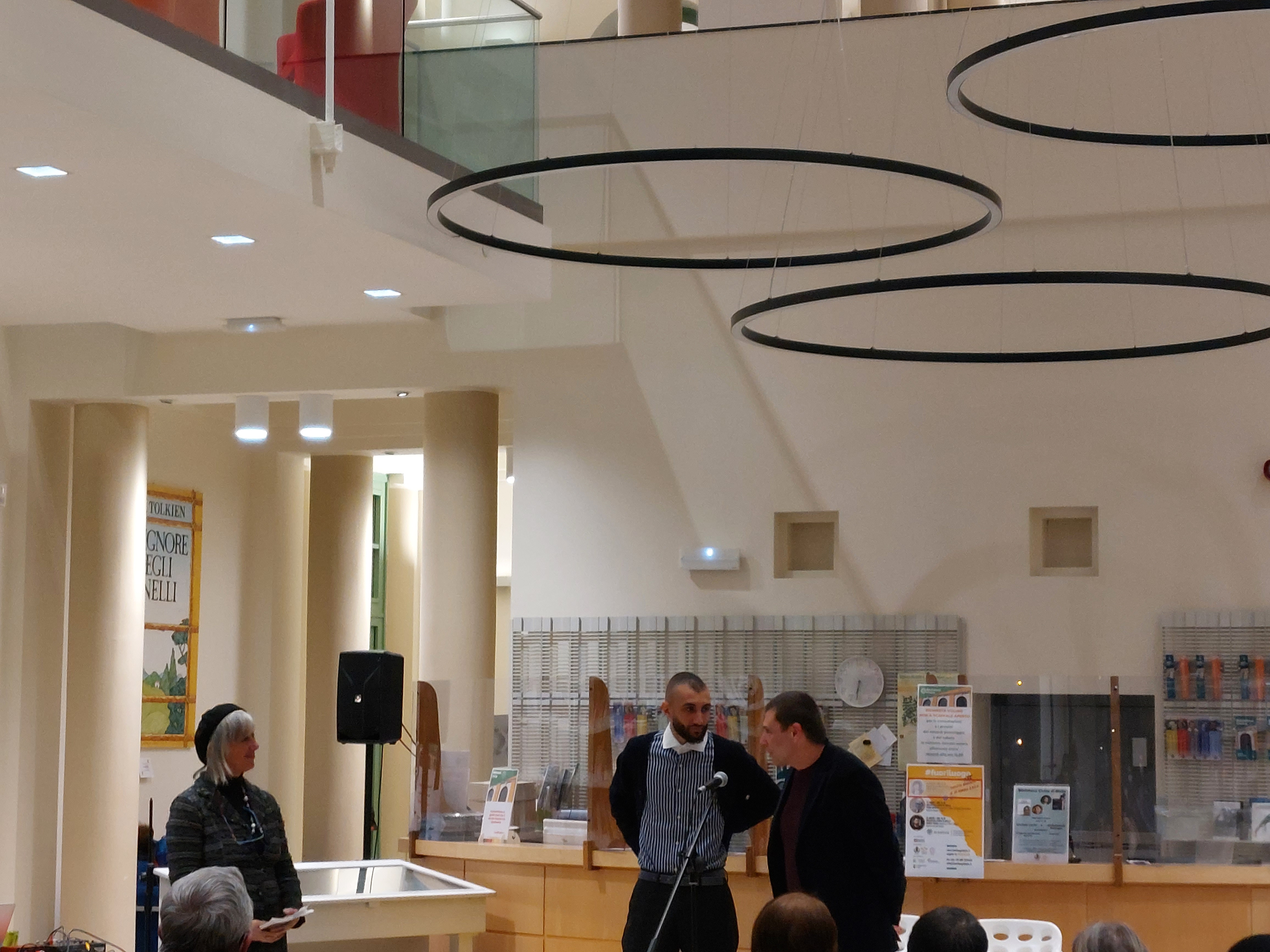 Ieri , martedì 8 marzo , si è tenuta una grande magistrale conferenza alla Biblioteca Civica di Biella alla presenza del carissimo scrittore e amico fratello Mohamed Bouraya e di Michele Carini che hanno presentato il primo autore “Contatto” e il secondo autore “Il ragazzo del barcone accanto “. Hanno partecipato anche gli attori di Associazione Strada di Piazza , Manuela Tamietti e Francesco Logoteta con a seguire il noto musicista Sami Karafi .