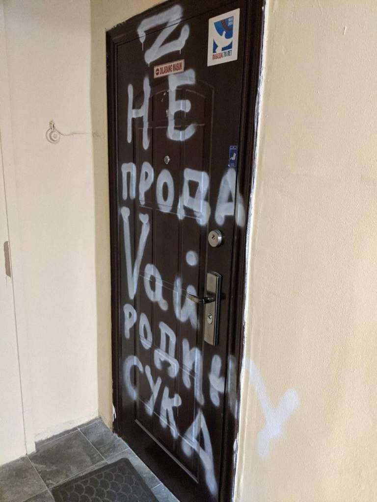 В Москве путинские крысы оставляют вот такие надписи на дверях политических активистов, протестующих против войны с Украиной.