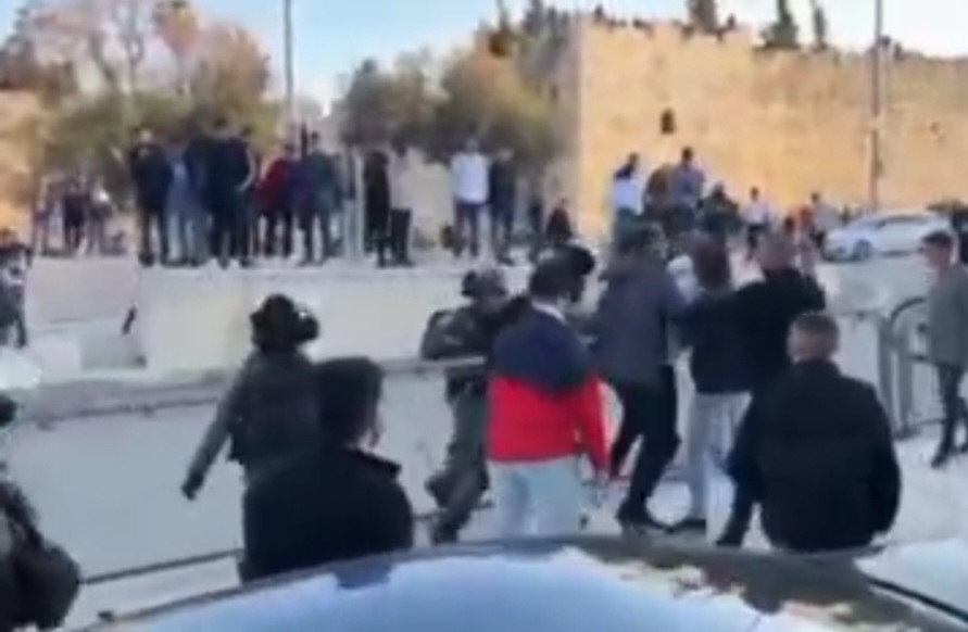 Le forze di occupazione israeliane attaccano i giovani palestinesi a Bab Al-Sahira, nella Gerusalemme ora occupata.