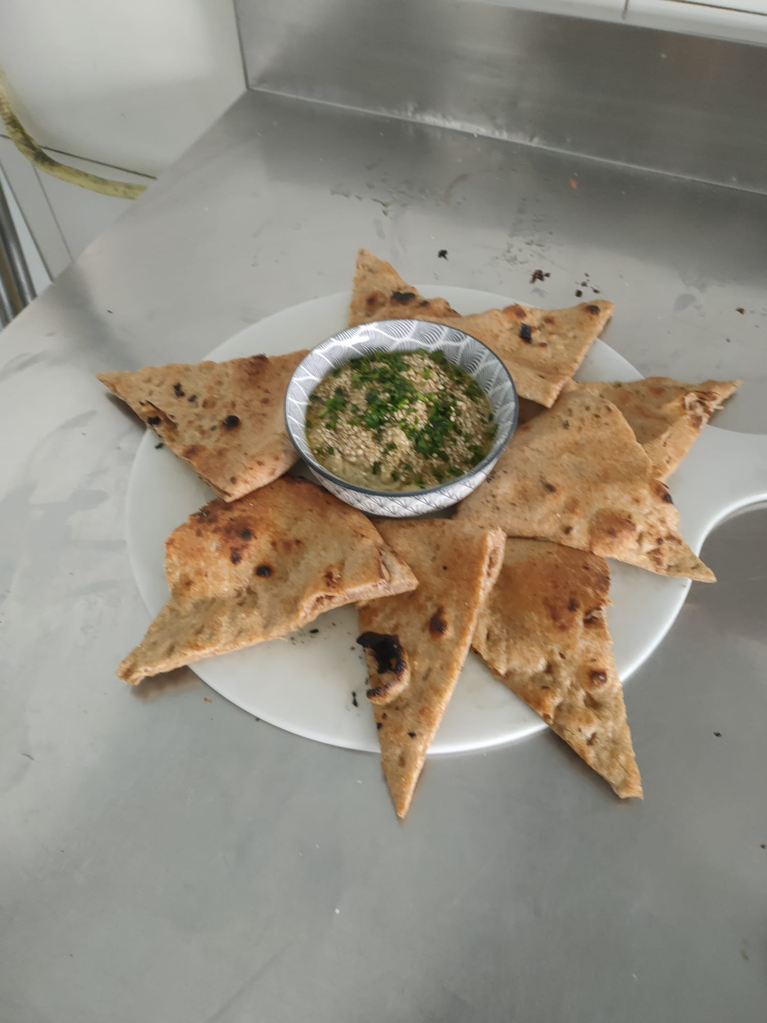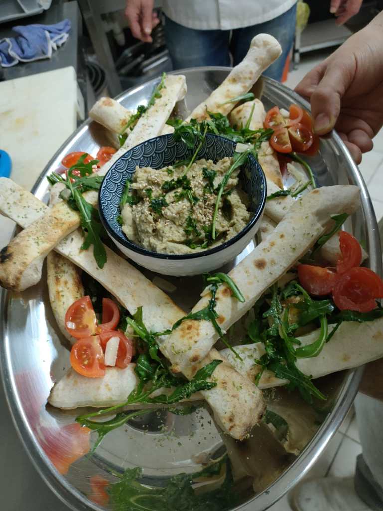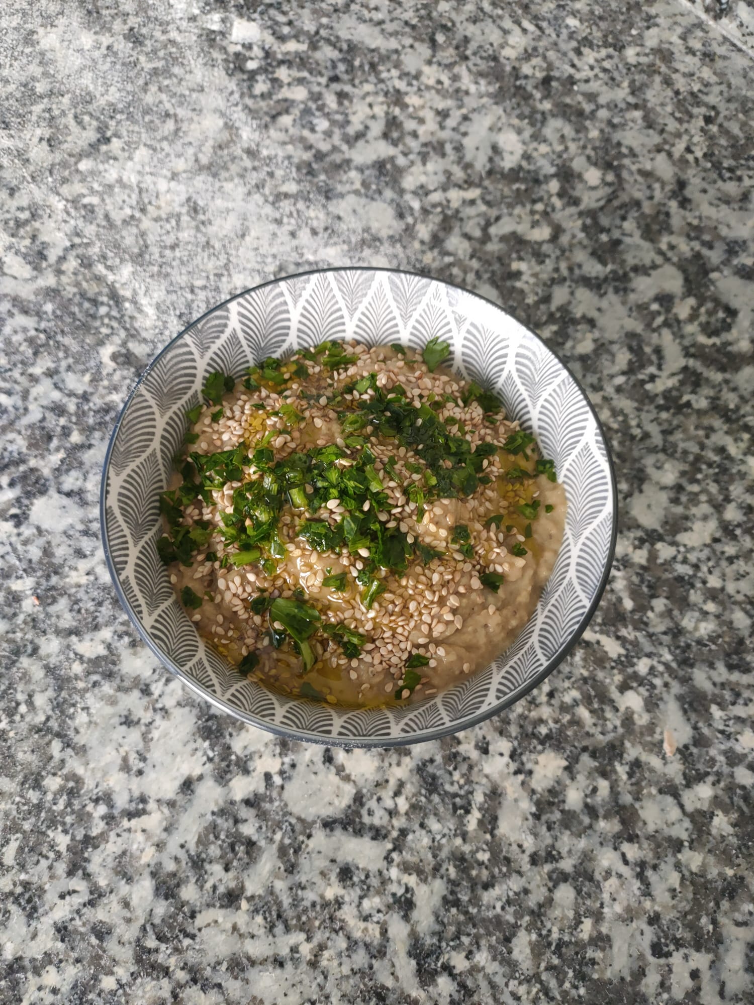 “Oggi vi presento un piatto vegano di origine orientale il babà ganoush che ha come ingrediente principale la melanzana. Si fanno appassire in forno per 3 minuti circa e si frullano con prezzemolo, paprika dolce, limone, aglio. Il tutto può essere servito con piadina, guarnita con sedano e spolverata di sesamo”.