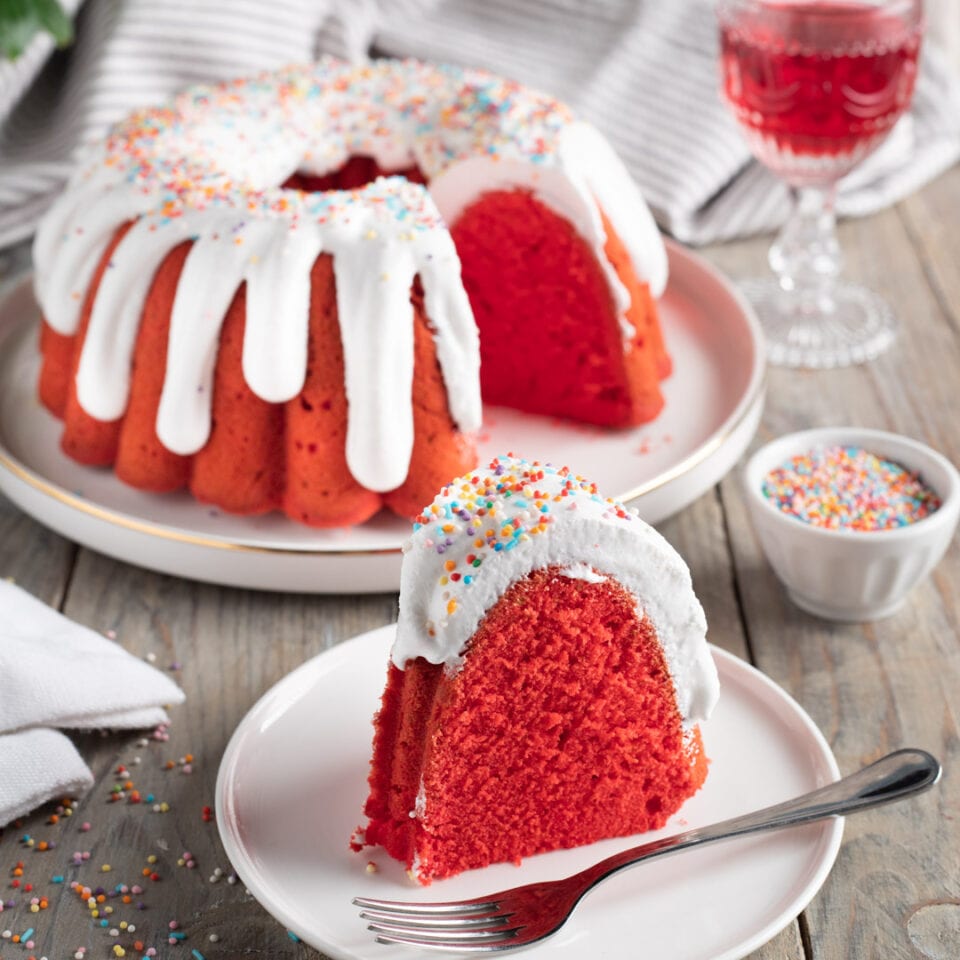 Ghiottoneria pasquale dell’Umbria a forma di ciambella di colore rosso con glassa bianca e confetti colorati di copertura che si usava offrire in dono alle donne dai loro uomini
