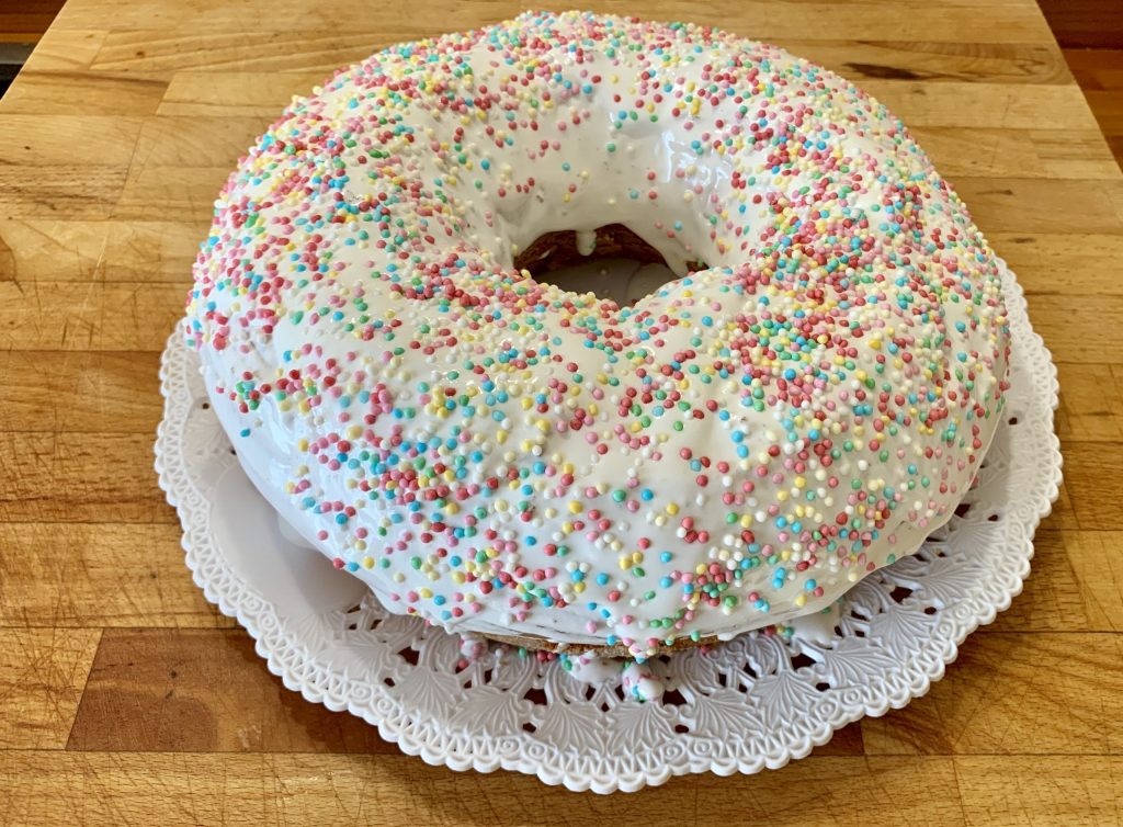 Prelibatezza del Lazio a forma di ciambella soffice decorata con glassa e zuccherini