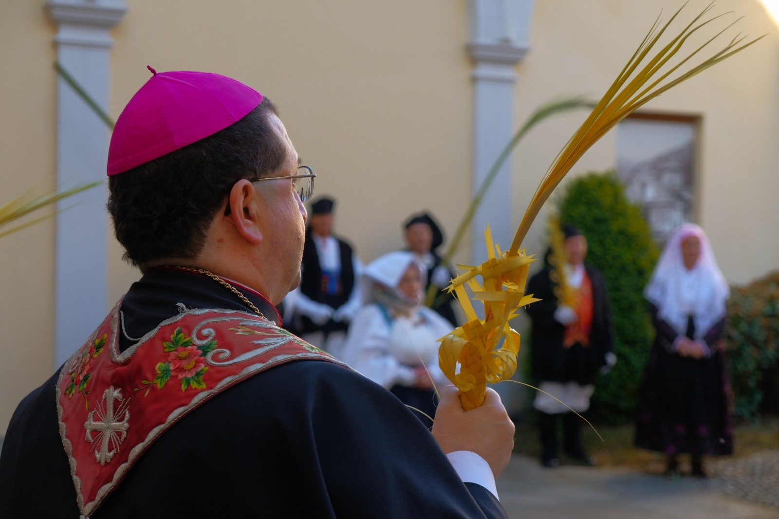 Questa mattina il Vescovo di Biella monsignor Roberto Farinella ha accolto in vescovado il gruppo sardo “Su Nuraghe” che ha donato le palme intrecciate per la festa cattolica di domani, sia per le varie celebrazioni liturgiche che si terranno nel Duomo di Biella , sia per alcune parrocchie e santuari della diocesi biellese