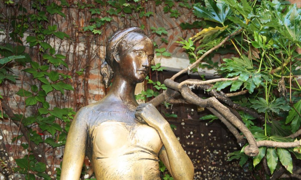 Poi abbiamo la casa di Giulietta con il suo famoso balcone e nel cortile si erge una statua di bronzo della giovane Capuleti dove ancora oggi molti visitatori mettono la mano sul cuore della statua per esprimere desideri e promesse d’amore.