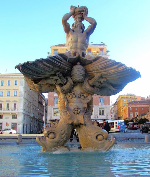La quarta fontana di Roma che prendiamo in esame è quella del Tritone, situata in piazza Barberini. Fu proprio un illustre membro della famiglia Barberini, il papa Urbano VIII, a commissionare il lavoro a Gian Lorenzo Bernini, il quale lo eseguì negli anni 1642-1643, impiegando come materiale il travertino.