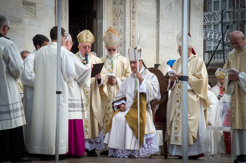 Il primo rito è stato l’unzione del capo, come segno di partecipazione del Vescovo al sacerdozio di Cristo; di seguito la consegna dei Vangeli, che mette in luce la fedele predicazione