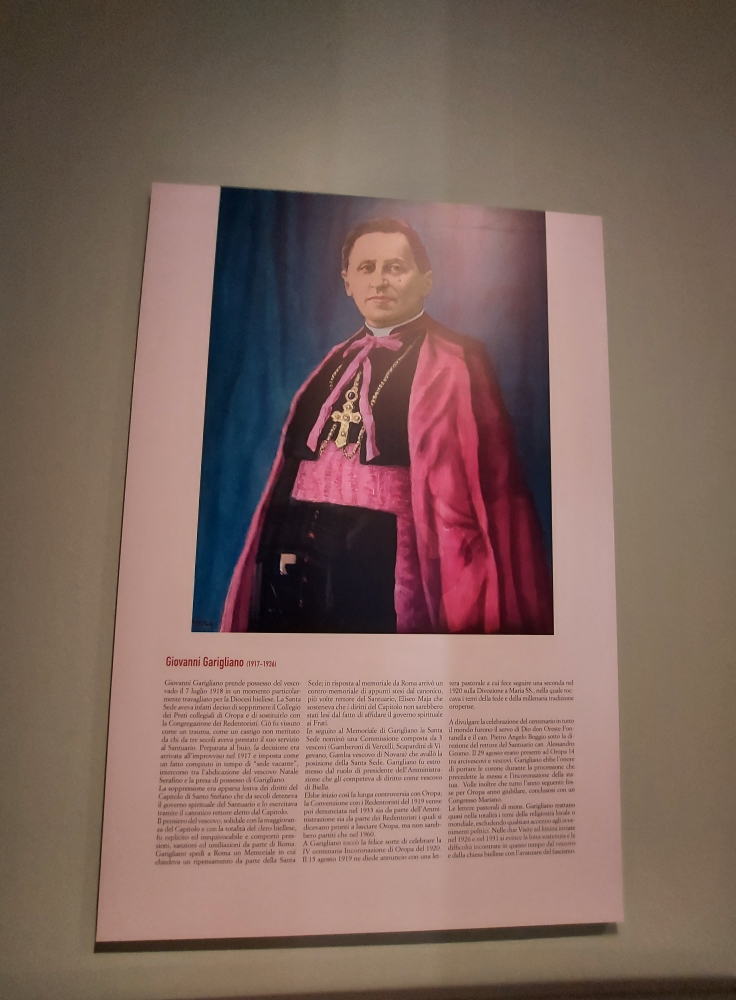 Poi abbiamo avuto l’opportunità di ascoltare Patrizia Bellardone, della Commissione dei Beni Culturali, che ha detto che la mostra è stata impostata con sobrietà; in questa mostra non si trovano tutti i sedici vescovi di Biella, ma soltanto sette. Ha inoltre affermato che Monsignor Losana meriterebbe una mostra interamente dedicata a lui.