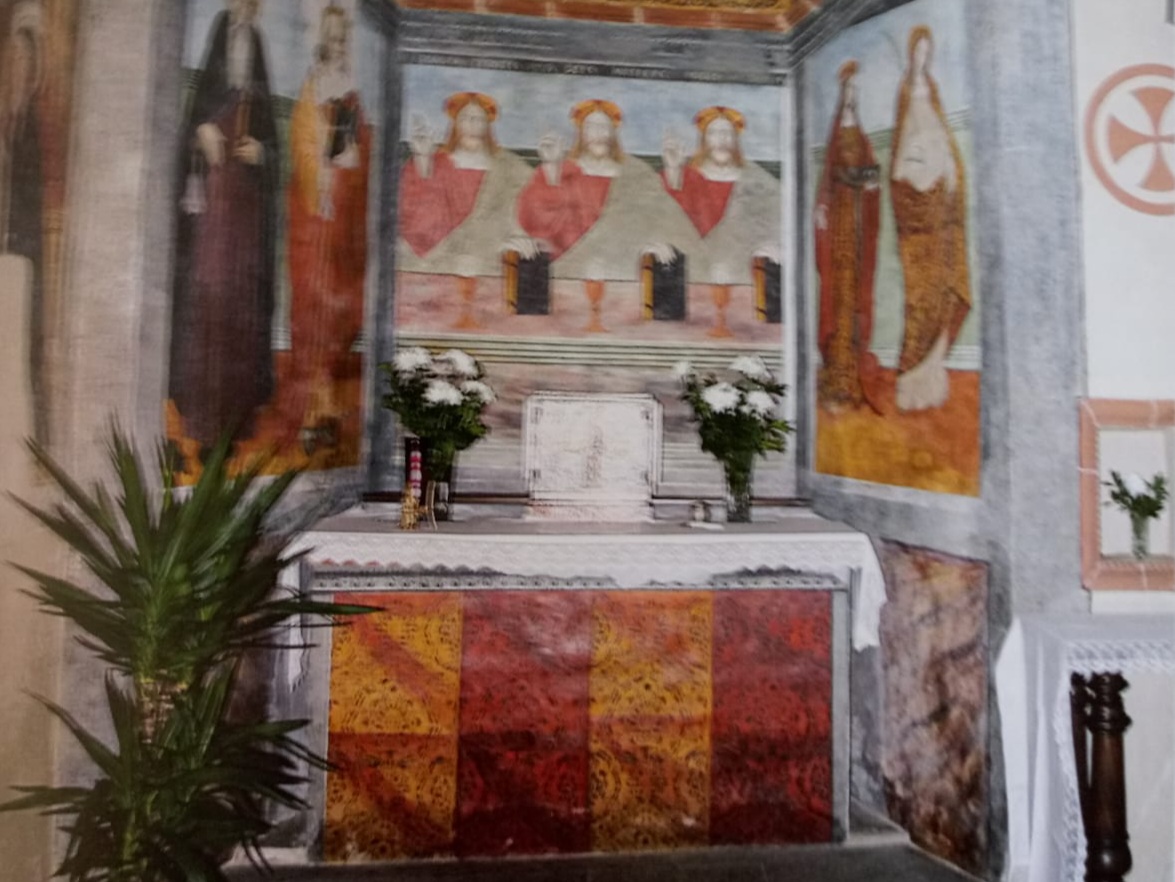 Nell’altare caponavata di sinistra gli affreschi si devono alla scuola di Defendente Ferrari; segnaliamo che sulla parete di fondo vi è un’immagine della Trinità con tre figure maschili identiche, con la mano destra benedicente e la mano sinistra appoggiata sul Vangelo.
