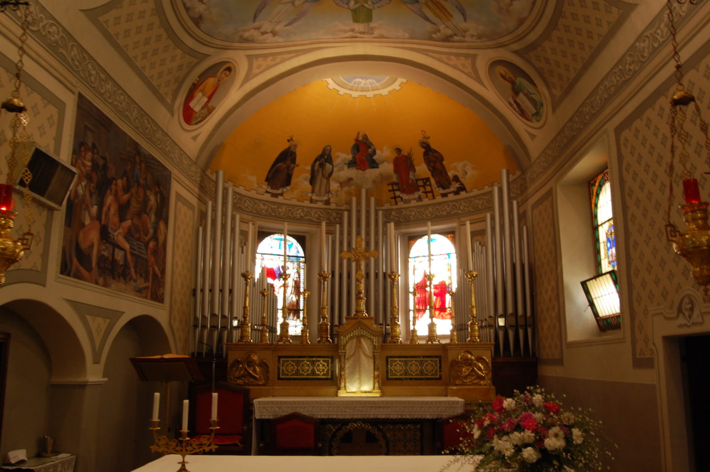 Oggi la chiesa è suddivisa in tre navate; in quella centrale ammiriamo degli affreschi di Giosuè Oldoni di inizio XVI secolo. L’organo risale addirittura al 2010 (si tratta della ricostruzione di uno strumento prodotto nel 1925 dai fratelli Aletti).