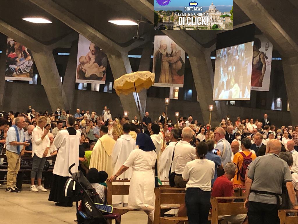 Centrale l’ adorazione eucaristica in Basilica San Pio X. Questa chiesa – presente all’interno del Santuario Mariano- ha una superficie di circa 12000 mq e tiene circa 25.000 persone. La sua consacrazione fu fatta dal futuro Papa Giovanni XXIII. La sua edificazione è stata voluta in vista del centenario delle apparizioni assistite da Bernardette verso la Madonna. Il progetto fu preparato dall’architetto Pierre Vago.