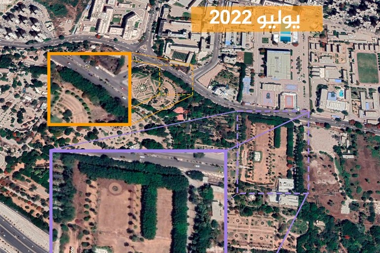 In questo contesto le immagini satellitari di alta qualità hanno mostrato l’abbattimento e la rimozione di alcuni alberi dal parco.