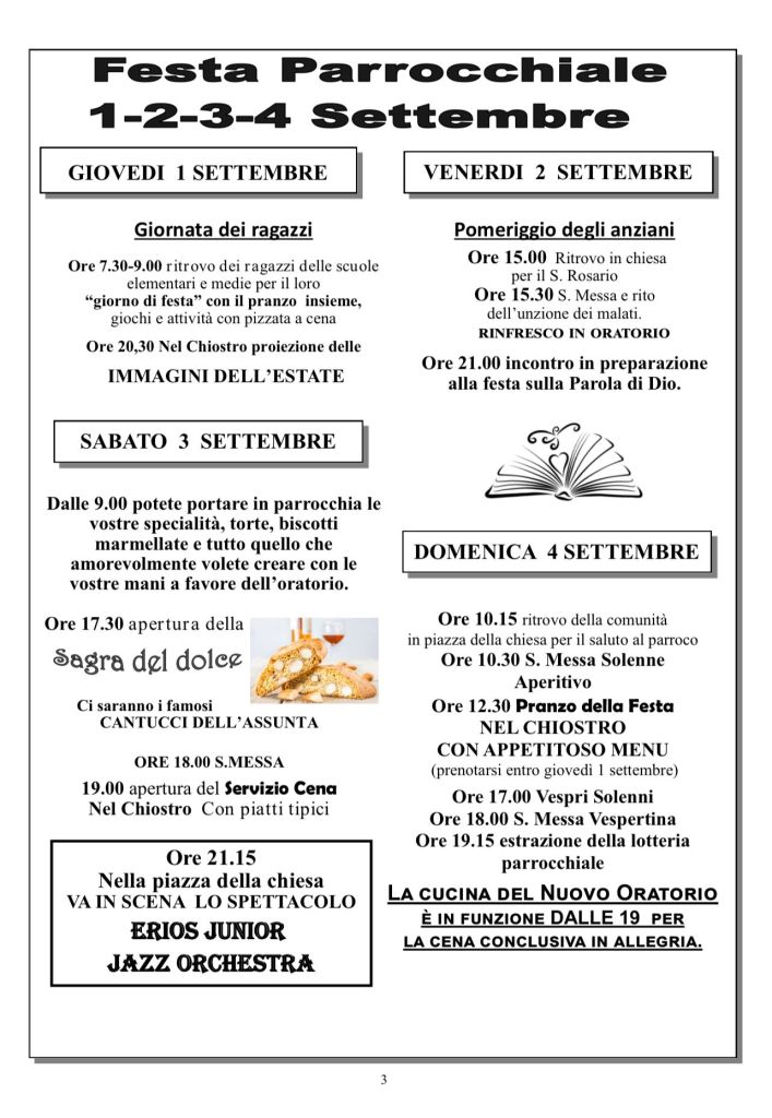 Tutti sono invitati a questi momenti comunitari e di fraternità che coinvolgeranno tutti gli abitanti del posto e tutti gli appassionati di storia.