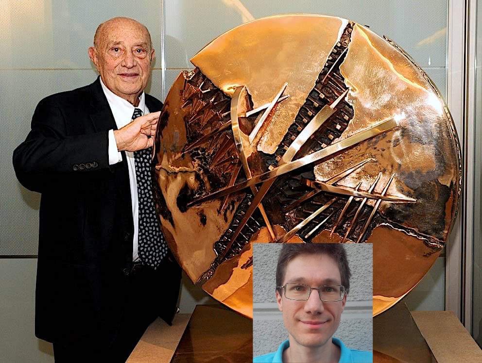 Arnaldo Pomodoro è nato il 23 giugno 1926 a Morciano di Romagna (nei pressi di Rimini); si tratta quindi di un artista vivente (e piuttosto longevo). Arnaldo è il fratello maggiore del compianto scultore Giò Pomodoro.