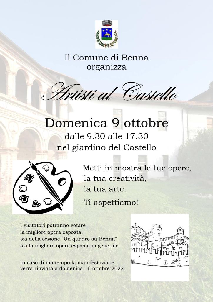 Appuntamento quindi domenica 9 ottobre 2022 dalle ore 9.30 alle ore 17.30 presso il Castello di Benna per la sesta edizione di “Artisti al Castello”.