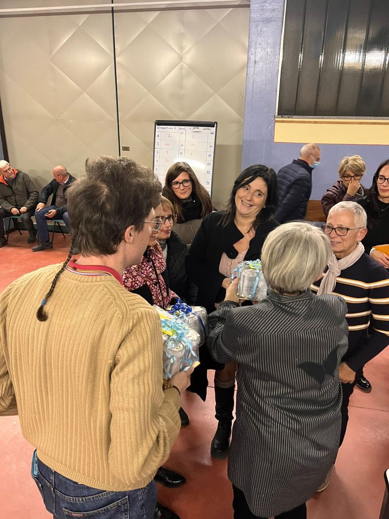 Ma non si può fare a meno di sottolineare il contributo offerto all’organizzazione del gioco dai volontari della biblioteca civica di Benna: Carla è stata la conduttrice, Giovanni e Barbara hanno segnato i punti (rispettivamente su una lavagnetta e su un quaderno), mentre Michel quando occorreva ha portato ai tavoli dei giocatori le buste con i quesiti e ha consegnato agli spettatori le lattine delle quali si è parlato in precedenza. Carla ha svolto il proprio ruolo con grande abilità e ancor più grande simpatia: abilità perché ha letto i brani con partecipazione e con il tono adeguato a ciò che leggeva, in modo da creare ogni volta l’atmosfera necessaria al brano in questione (in parole povere, non sembrava che leggesse l’elenco telefonico!); simpatia perché ha fatto un tifo tanto partigiano quanto divertente per la squadra di Benna e in questo modo ha infuso allegria a tutti, compresi i membri della squadra di Verrone.