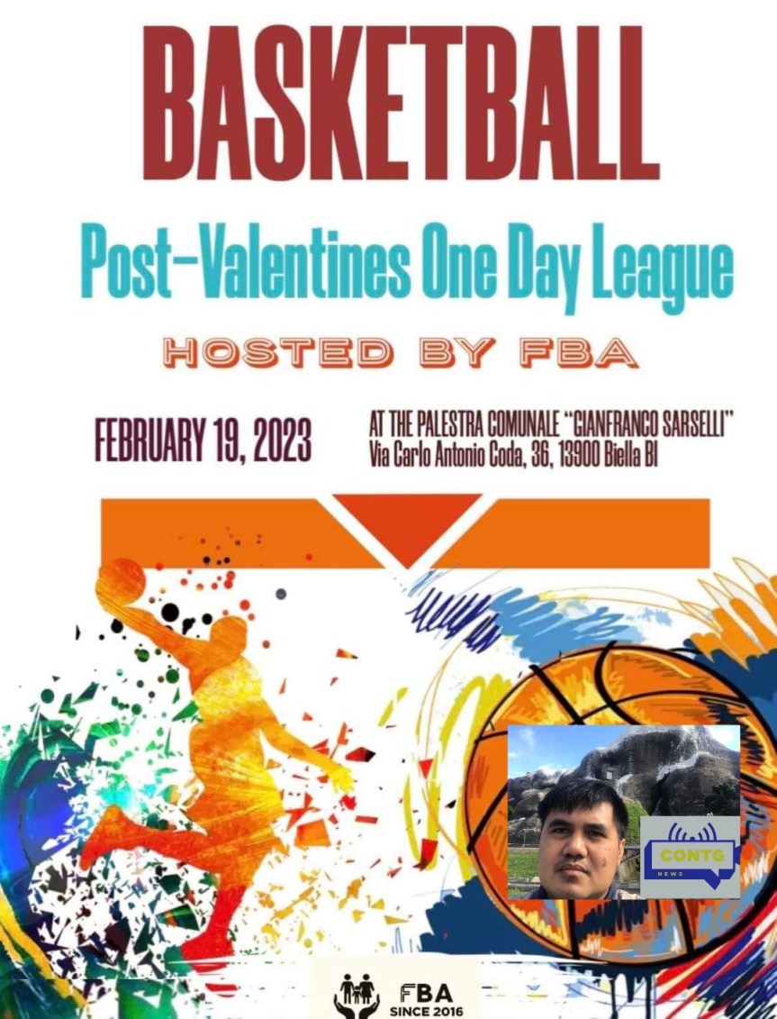 “Interrompiamo ogni nostro lavoro famiglie, amici e colleghi che il 19 febbraio 2023 è un Basketball Kinda Day e prevediamo una possibilità di vincita del 100%, quindi vieni e unisciti a noi! Tutto fuori, tutto gioco e SOLO NOI! Ci vediamo!😍 🏆 💵 🎁” Queste le parole del nostro collaboratore e presidente della Fba Benjie Baclig che per domenica 19 febbraio alla Chiavazza Gym di Via Carlo Antonio Coda 36 organizzerà un fantastico torneo di Basket 🏀 con più di 6 squadre che disputeranno tra loro in amicizia e allegria con lo spirito di valorizzare fortemente questo bello sport molto diffuso nelle Filippine e in tutto il Mondo.