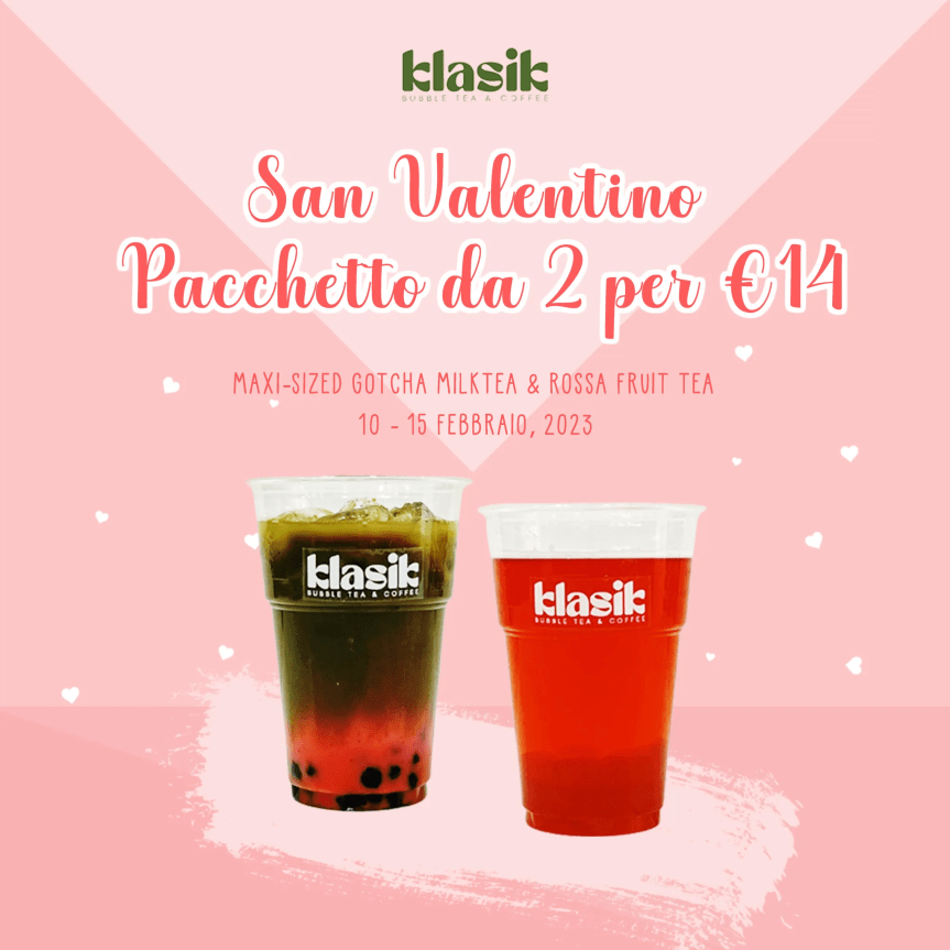 Se volete ottenere la più gustosa e rinfrescante combinazione di San Valentino potete acquistare 1 Maxi-Sized Gotcha Milktea e Rossa Fruit Tea a soli €14!
