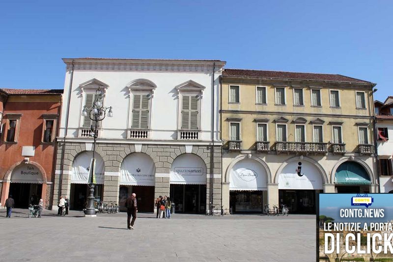 presso la Loggia dei Notai (secolo XVI) e la Torre dell’Orologio (1763). Tutta la piazza è contornata da portici, sotto i quali si trovano eleganti caffè e negozi