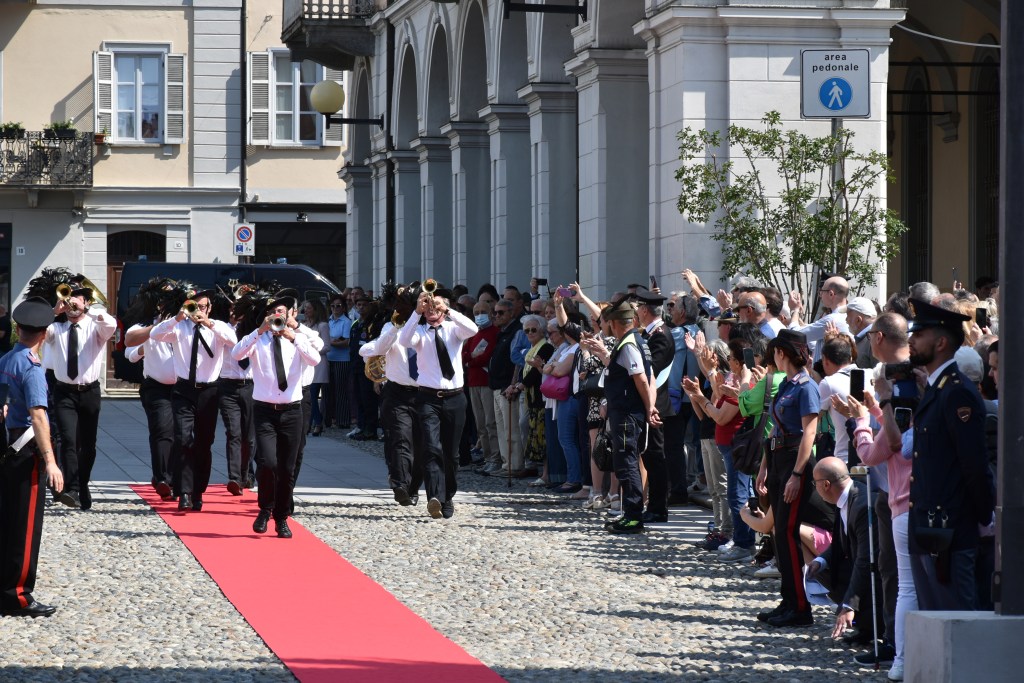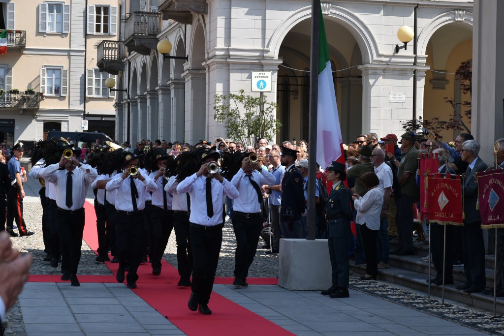 Nel luogo della cerimonia ha fatto ingresso la fanfara dell’Associazione nazionale bersaglieri, sezione di Biella.