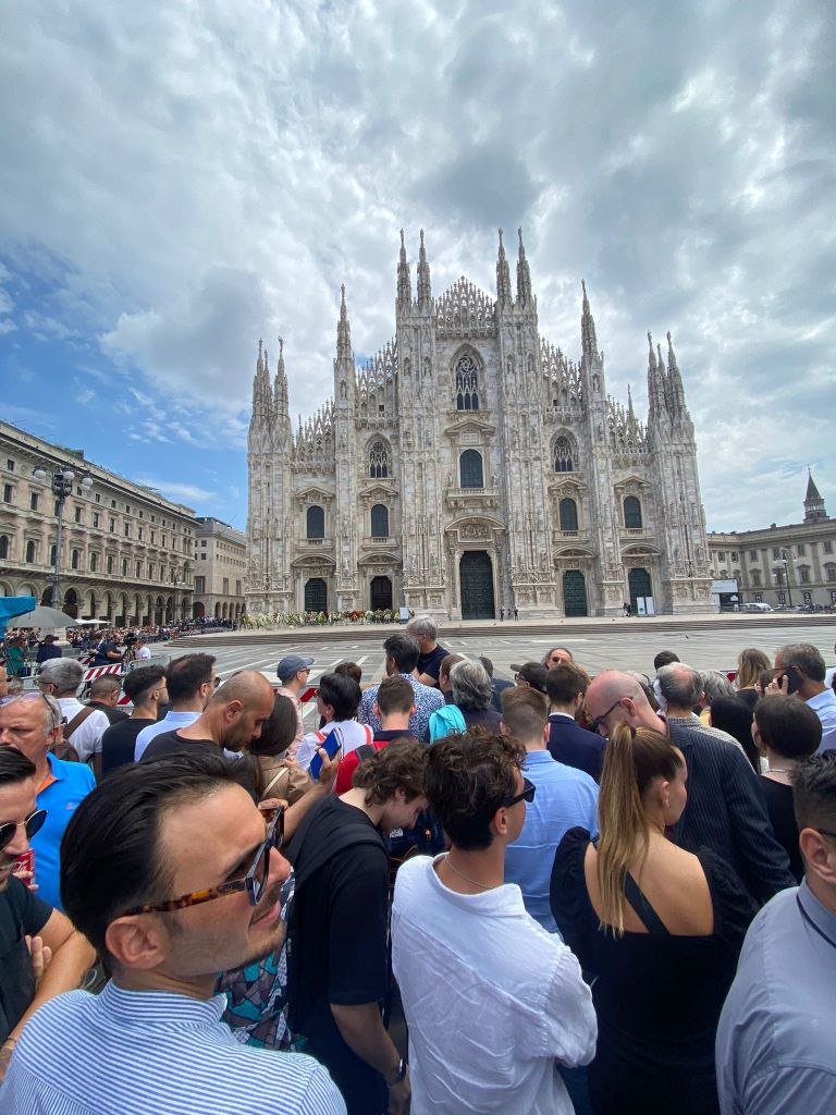 Ieri l’ Italia durante il Lutto di Stato proclamato dal Governo ha dato l’ addio al Presidente Cavalier Silvio Berlusconi. Più di 2000 persone si sono recate nel Duomo di Milano ma altrettante 50.000 se non di più lo hanno seguito dai maxi schermi nel rispetto delle regole e della serietà al di là di qualche passante con magliette contestatrici degne di mancanza di rispetto a chi gli voleva bene e alla famiglia al quale va la nostra vicinanza con in testa il Patron di Mediaset Piersilvio Berlusconi .