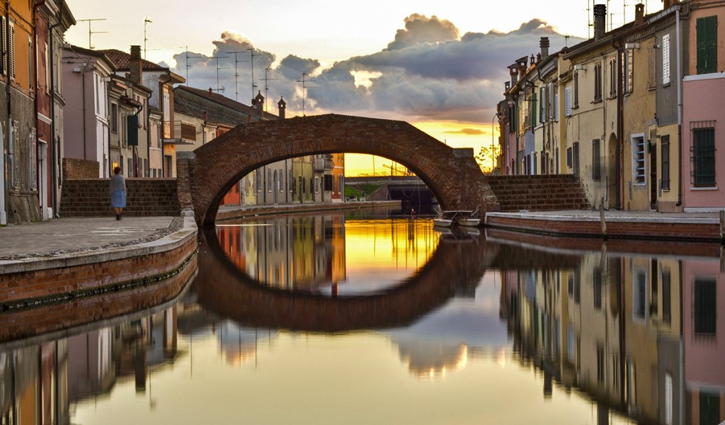 Comacchio sorge su tredici isole e, visitandola, sarà possibile comprendere che il suo centro storico risulta un intreccio di tanti piccoli canali e vicoli. La sua origine risale a circa duemila anni fa e fino al 1821 si poteva raggiungere solo via acqua.