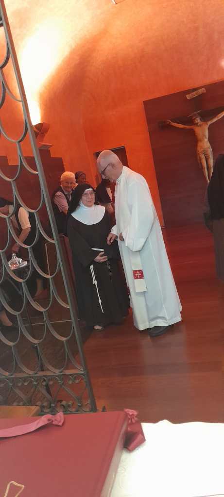 Santa chiara casta sorella di san Francesco : oggi é la memoria di santa Chiara, prima “donna” che volle seguire la vita proposta da Francesco d’Assisi. Francesco la accolse permettendole di ritirarsi presso la chiesetta di San Damiano, dove poi giunsero altre fanciulle dando vita alla comunità delle sorelle Clarissse, spose di Cristo, oranti in regime di clausura, vivendo unite a sorella povertà. A Roasio , sotto la diocesi di Vercelli, da a qualche hanno vive una piccola comunità di sorelle clarisse che ogni anno festeggiano la loro fondatrice con una solenne celebrazione eucaristica presieduta dal vescovo della diocesi Vercellese. Stamattina alle 10 la piccola Chiesetta del convento si è fatta più “spaziosa” per accogliere i numerosi fedeli desiderosi di onorare la santa e di solennizzare la celebrazione per le monache. In un bel clima raccolto si è svolta la celebrazione e l’omelia di sua eccellenza ha dato bellissimi spunti di riflessione. Ha parlato della “nostalgia di Dio ” che si sta diffondendo. Prova ne sia il grande numero di giovani presenti alla gmg ed anche il buon numero di fedeli presenti oggi. Sempre con il sorriso ed il viso radioso ha invitato i presenti a tenersi uniti a Cristo come “tralci ” uniti alla pianta, a far trasparire sempre la gioia di essere vicini a Gesù per invitare altri ad imitarlo. Le sorelle clarisse hanno subito messo in pratica l’invito contenuto in omelia salutando con il loro onnipresente sorriso e con la luce negli occhi i presenti presso la stanza dei colloqui dove avevano preparato un piccolo rinfresco. Noi terziari abbiamo potuto partecipare alla messa sentendoci particolarmente uniti alla comunità, già sede di incontri di catechesi. Ringrazio il Signore per questa splendida giornata cercando di “passare. ” a voi la gioia che oggi mi accompagna. Pace e bene