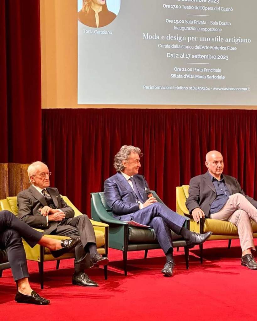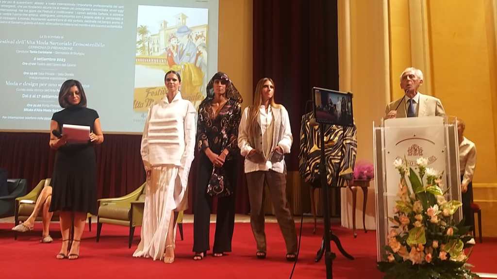 Nel pomeriggio invece, nel rispetto della grande tradizione legata al mondo della creazione sartoriale, che elesse Sanremo come città simbolo già negli Anni ‘20, è stato organizzato un convegno sul futuro del Made in Italy. Il convegno, realizzato con Unesco Firenze e Unesco Sanremo, è stato aperto dall’assessore al Turismo e attività economiche di Sanremo Giuseppe Faraldi, che ha evidenziato la straordinaria partecipazione di stranieri iscritti per la visita alla mostra. Sono intervenuti il sindaco di Vigevano Andrea Ceffa, che ha segnalato la storicità delle industrie di calzature e diversi campioni storici sono stati abbinati ai capi in mostra fino al 17 settembre presso il Casinò di Sanremo; mentre l’assessore alle Attività economiche e Unesco di Biella Barbara Greggio ha ricordato come la sostenibilità sia il filo conduttore della produzione tessile biellese, sia nei processi produttivi, sia nel prodotto manifatturiero finale, senza dimenticare il trattamento degli animali nel loro ambiente di vita. “Il distretto biellese si distingue nel panorama mondiale di produzione dei tessuti d’eccellenza laniera per la qualità che viene perseguita nella produzione, nella ricerca tessile, nella formazione e nella cura delle lavorazioni – ha detto Greggio -. Biella è attenta alla sostenibilità e al lavoro dei sarti, ambasciatori dei tessuti biellesi nel mondo, abili interpreti di questa eccellenza con tecnica, innovazione e creatività: per questo motivo dobbiamo rimarcare in ogni occasione la nostra identità per salvaguardarne l’economia, che rappresenta un tassello prezioso della filiera del Made in Italy”.