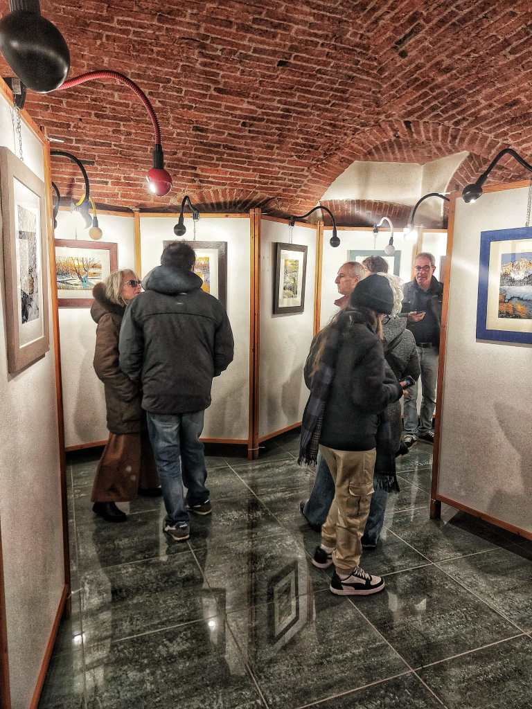 La collettiva di pittura ‘Arte sotto l’albero’ dove espongono Paola Braghin, Elisa Guetta, Gianni Poma e Cristina Scalabrino.