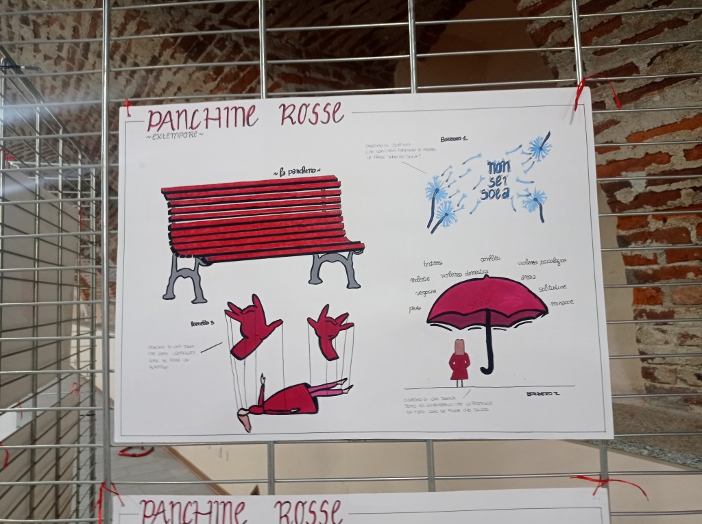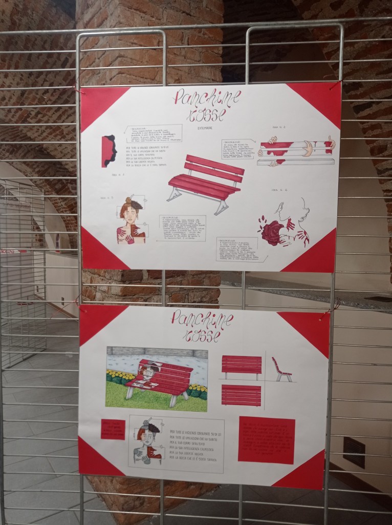 Per queste ragioni, nel 2017, presso il Comune di Biella è nato il Tavolo Panchine Rosse al fine di mantenere alta l’attenzione sul tema, attivando una serie di azioni, fra cui la collaborazione con il Liceo Artistico cittadino per la realizzazione di bozzetti che si sono trasformati nelle tante panchine ubicate nei diversi quartieri della città.