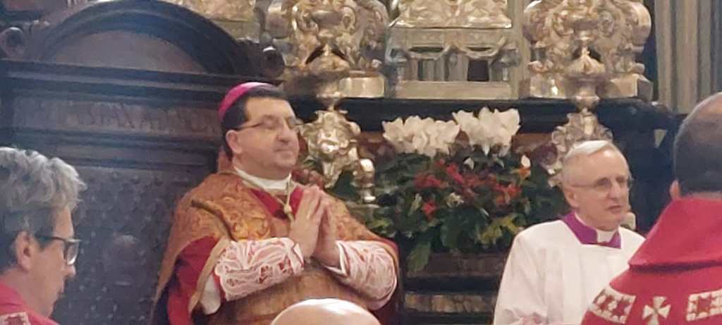 In seguito il vescovo ha invitato a pregare per i cristiani perseguitati e ha espresso vicinanza a quanti soffrono per le guerre. Infine monsignor Roberto ha fatto riferimento al libro biblico dell’Ecclesiaste, dove si legge che c’è un tempo per parlare e un tempo per tacere; tacere a volte è opportuno per non provocare contrasti. La Santa Messa è proseguita con la celebrazione eucaristica e la benedizione Solenne, impartita dal vescovo stesso. Al termine della messa il coro ha eseguito alcuni brani natalizi e all’uscita i volontari hanno distribuito alla gente delle piccole pagnotte.