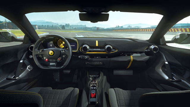 I valori dei consumi di carburante e delle emissioni di CO2 si riferiscono al ciclo WLTP.L’elemento di spicco della vettura risiede nella più recente evoluzione del leggendario motore aspirato Ferrari con 12 cilindri a ‘V’ e angolo tra le bancate di 65°, in grado di erogare in questa versione una potenza di 830 cv e un regime massimo pari a 9500 giri/min. (due record per i motori termici a uso stradale del Cavallino Rampante).
