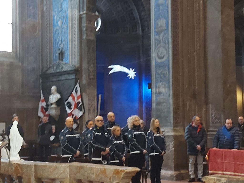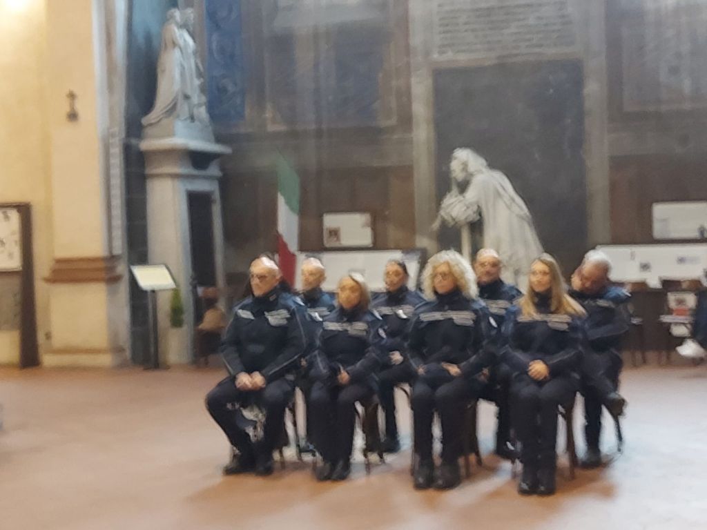 I sacerdoti insieme ai ministranti hanno accolto all’ingresso la Polizia Locale in festa , le autorità civili e militari entrando così processionalmente con l’accompagnamento musicale nella liturgia eucaristica di Marina Schiavinato.