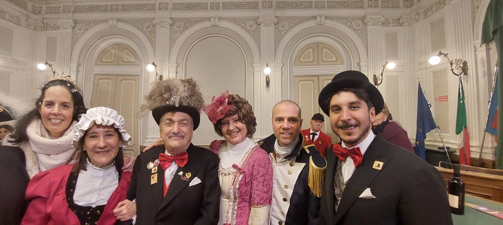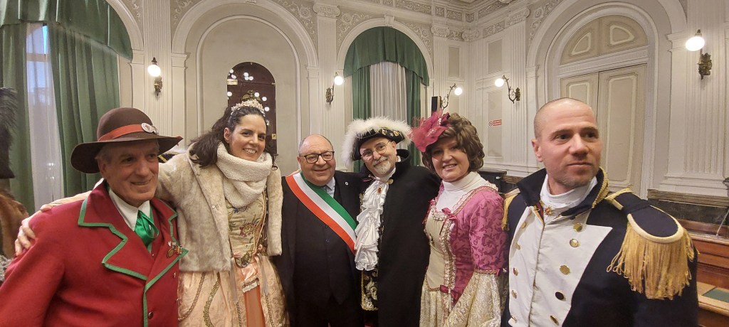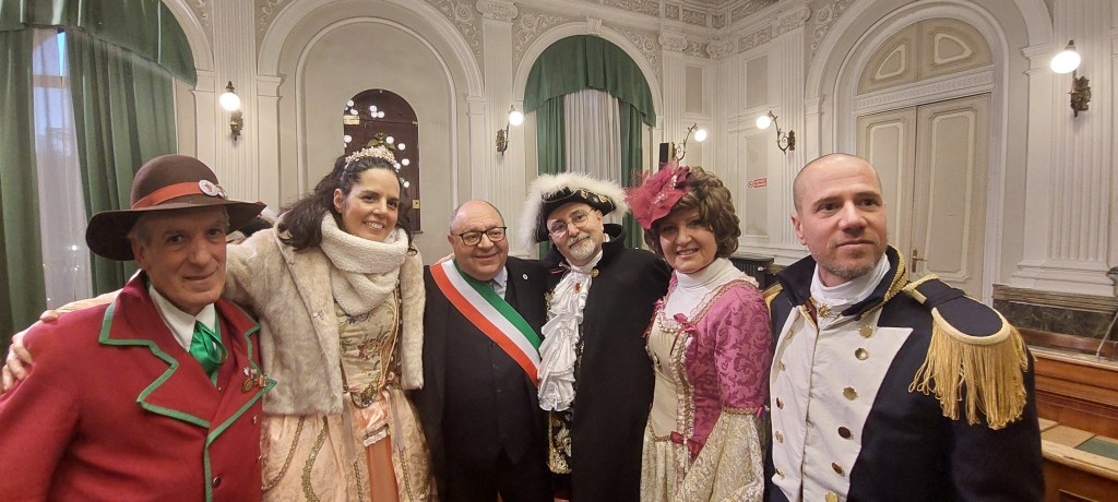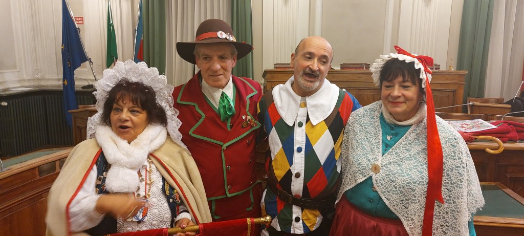L’edizione 2024 del Carnevale di Biella è iniziato oggi con la tradizionale consegna delle chiavi della città al Gipin. Le vie del centro, il centro commerciale i Giardini e infine Palazzo Oropa hanno fatto da cornice ai primi atti della festa che si protrarrà fino a metà febbraio. A sancire il via libera ai festeggiamenti è stata la consegna delle chiavi della città da parte del sindaco Claudio Corradino al Gipin, la maschera biellese impersonificata da Silvano Mocci, che le ha ricevute nel corso della cerimonia a cui hanno partecipato anche Catlin-a (Mina Colaianni) il Cucu (dopo 40 anni di onorato servizio Franco Caucino passerà il testimone a Marco Minetto) di Chiavazza e le maschere del territorio, come il Conte del Thes (Gianni Sandrini) e la Bela Ginevra (Laura Ceron), il Marghè (Paolo Bisson) e Lacera (Anna Dallaba); insieme ad un altro centinaio di persone giunte anche da fuori regione.