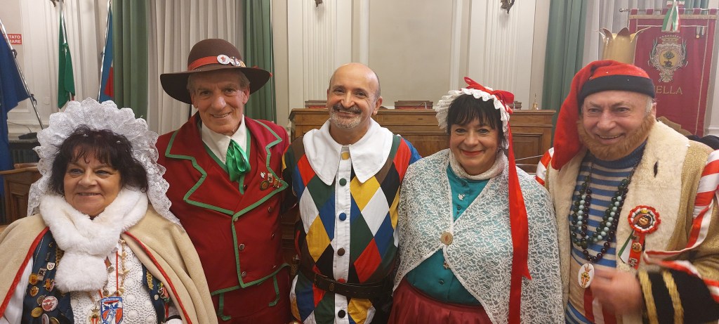 Arlecchino: “Da alcuni anni vengo in città ed è un piacere rivedere tante maschere amiche. Spero di rivedere in futuro anche il sindaco”.