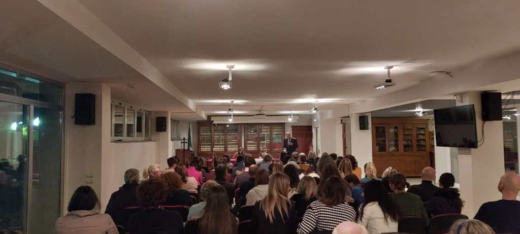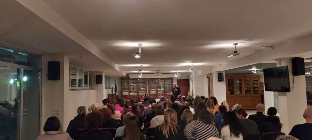 La sala adibita alla conferenza sul libro di Autino: “Stefano e Neera, storia di una coppia ateniese di 2400 anni fa”, si è riempita in ogni ordine di posto.