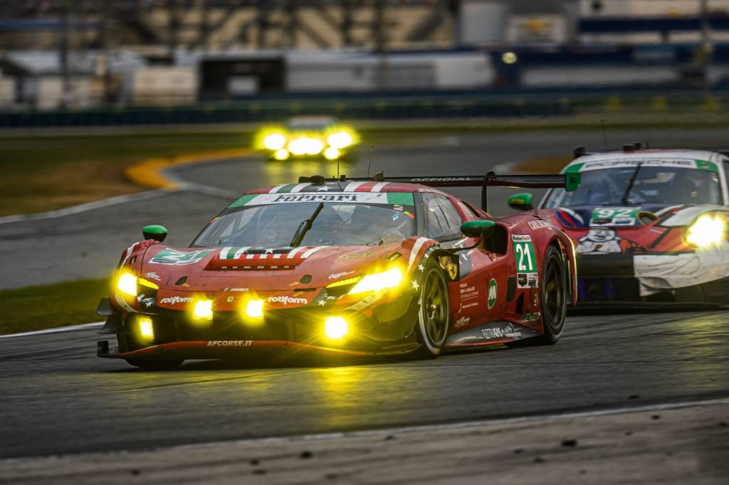GTD Pro. Sin dalle prime fasi della corsa il quartetto di Risi Competizione ha mostrato di avere le credenziali per competere nelle posizioni di vertice, conquistando per la prima volta la leadership allo scoccare della settima ora. Nel cuore della notte, quando sul cronometro erano trascorse dodici ore, la Ferrari – affidata nei primi stint a Serra e Rigon, ai quali sono subentrati Pier Guidi e Calado – conquistava la testa della corsa e manteneva e sino alle prime luci dell’alba si confermava stabilmente nella top-3. Nonostante una sosta ai box lunga 2 minuti e 51 secondi, necessaria per il cambio dei freni posteriori a cinque ore dal termine, Calado tornava in pista inanellando ottimi giri e riportando la Ferrari in testa, mentre si delineava una sfida a tre per il successo con la BMW numero 1 e la Porsche numero 77. Nelle ultime due ore Risi Competizione irrobustiva il vantaggio sugli inseguitori e, nonostante una Full Course Yellow ricompattasse il gruppo a 52 minuti dal traguardo, firmava il successo in Florida con Serra che transitava sotto la bandiera a scacchi, con 1 giro di vantaggio sulla Porsche.