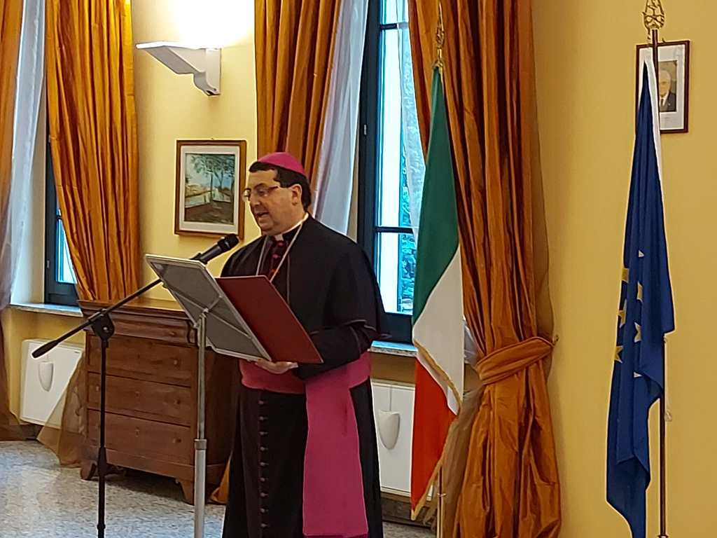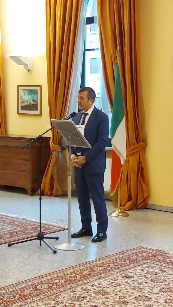 A Biella – dopo la deposizione della corona ai Giardini Zumaglini – in Prefettura si è tenuto il singolare ricordo con la lettura delle parole del Presidente della Repubblica e con il pensiero di Sua Eccellenza il Signor Prefetto Silvana D’Agostino. Di seguito i singolari interventi del Sindaco di Biella Claudio Corradino, del Sottosegretario alla Giustizia Andrea Delmastro Dalle Vedove, del Vescovo di Biella monsignor Roberto Farinella.