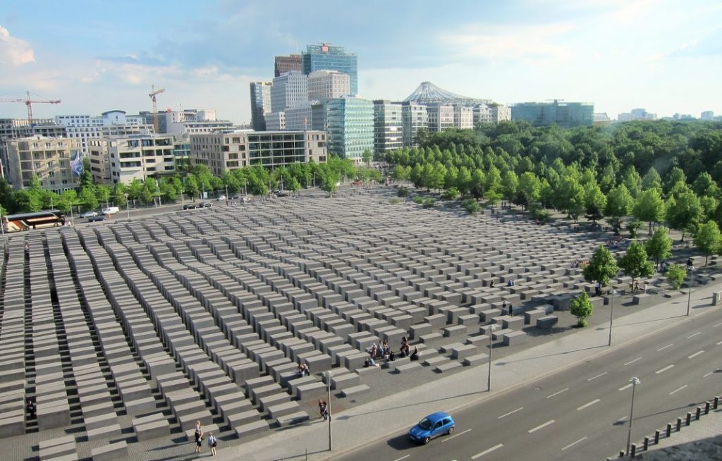 In pieno centro a Berlino si trova il memoriale dell’Olocausto per gli ebrei assassinati d’Europa, collocato tra la porta di Brandeburgo e Postdamer Platz. Inaugurato il 10 maggio 2005 su progetto dell’architetto statunitense Peter Eisenmann, il monumento sorge su di un’area di oltre 19 mila metriquadrati dove un tempo erano presenti le proprietà di Goebbels, il ministro della Propaganda del Terzo Reich. L’opera consta di 2711 steli in calcestruzzo di diversa altezza ed è accessibile da qualunque parte del perimetro. Camminare tra le steli, rapiti dalla sinuosità del monumento, suggerisce smarrimento, quello della ragione, con la solitudine che ne deriva tanto per le vittime, impotenti dinanzi all’orrore, quanto per i carnefici mentalmente bloccati in un’ideologia di morte e distruzione. È anche presente un centro informazioni dove sono state catalogate diverse testimonianze di quanti tra il 1933 e il 1945 vissero la tragedia della Shoah.