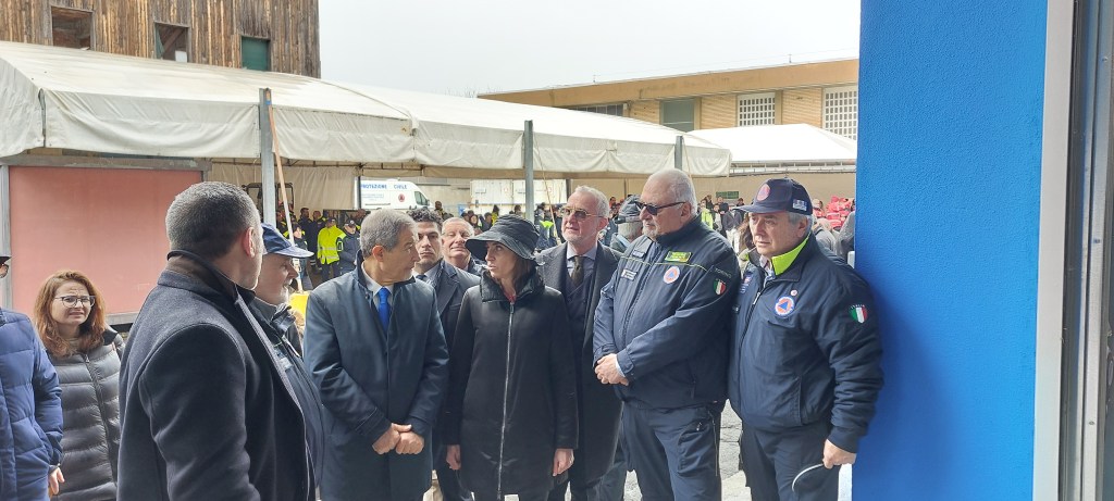 Il ministro è stato accolto dal Presidente del Coordinamento della Protezione Civile Provinciale Cleto Canova e , come già detto, da più di 160 volontari che ogni giorno operano al servizio della collettività intera ponendo essa sempre al centro delle loro vite .